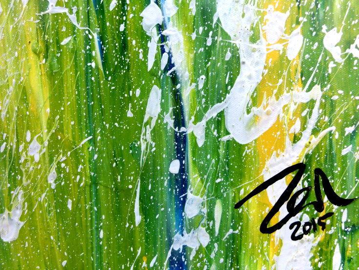 Dieses abstrakte Acrylbild ist ein handgemaltes Original vom Künstler Alex Zerr aus Bad Lisppringe und ist im Jahr 2015 in seinem Atelier entstanden. Das Bild hat eine Größe von 90x180cm und ist bereits auf einem hochwertigen und stabilem Rahmen aufgespannt. Dadurch kann das Bild nach der Lieferung direkt an die Wand gehängt werden und sofort in Ihrem Raum wirken. Alle Seiten des Gemäldes sind passend zum Motiv bemalt, so dass kein zusätzlicher Rahmen benötigt wird.