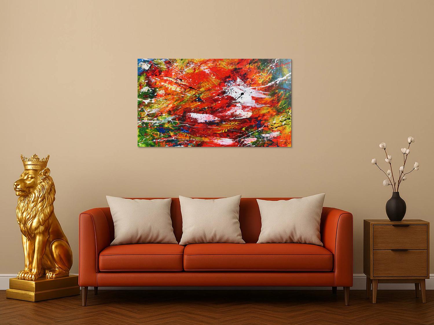 Abstraktes Gemälde auf Leinwand Modernes Acrylgemälde abstrakt mit viel rot in 70x120cm von Alex Zerr