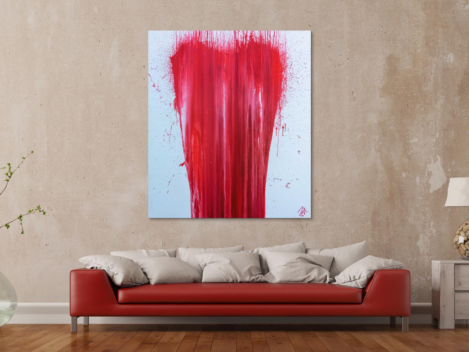 Abstraktes Gemälde auf Leinwand Modernes Acrylgemälde minimalistisch in rot weiß zeitgenössisch in 140x120cm von Alex Zerr