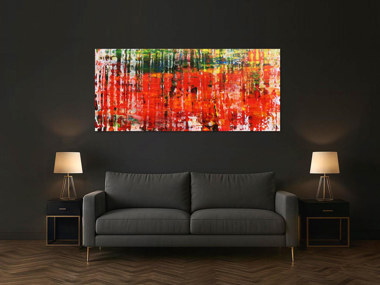 Abstraktes Gemälde auf Leinwand Modernes Acrylgemälde mit vielen Farben abstrakt mit Spachteltechnik in 80x200cm von Alex Zerr