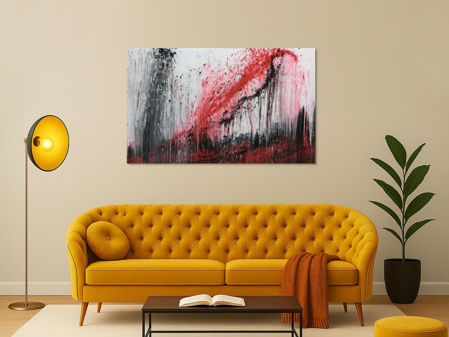 Abstraktes Gemälde auf Leinwand Modernes Acrylgemälde rot schwaz weiß in 90x150cm von Alex Zerr