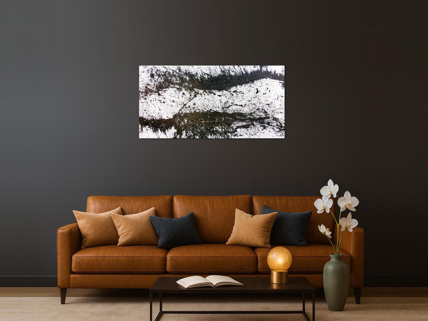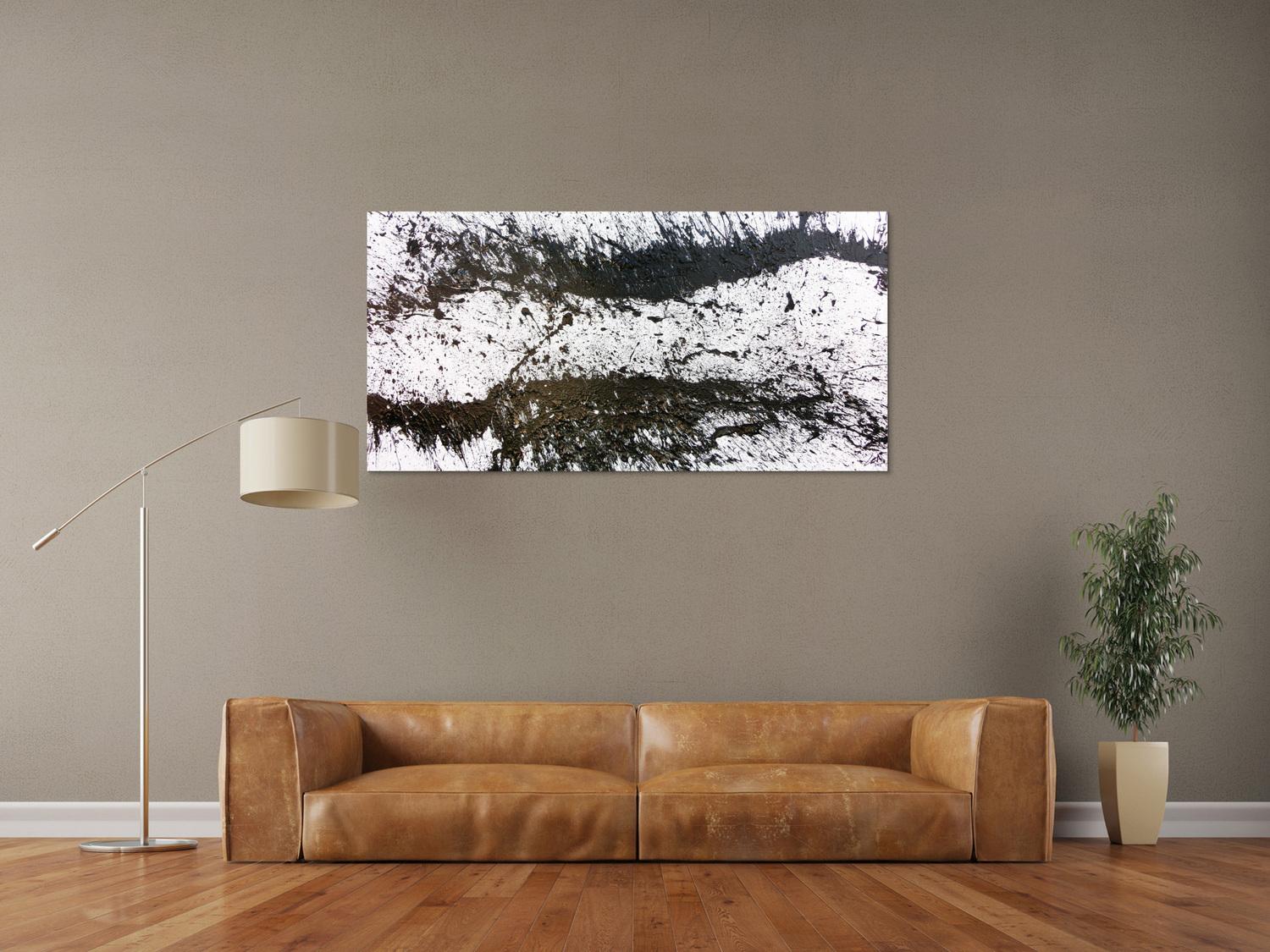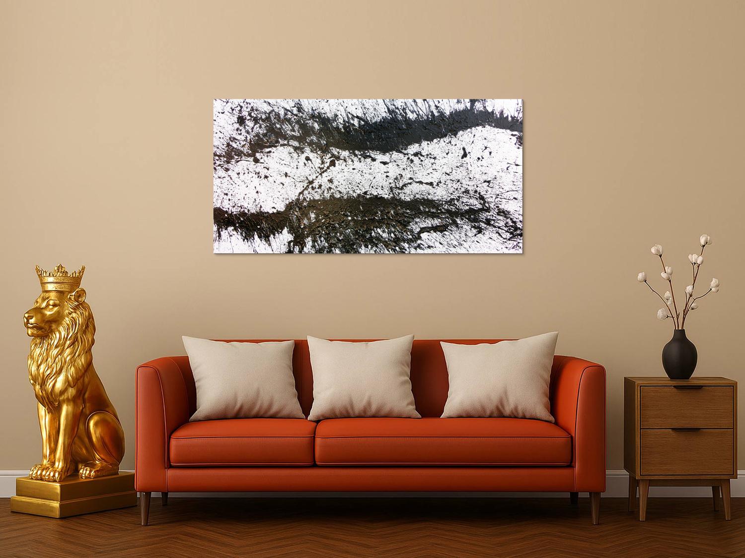 Abstraktes Gemälde auf Leinwand Modernes Acrylgemälde schwarz weiß abstrakt in 70x140cm von Alex Zerr