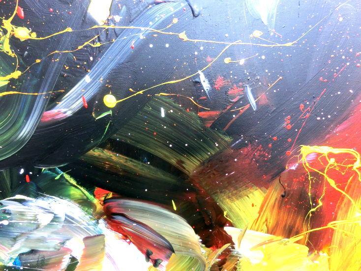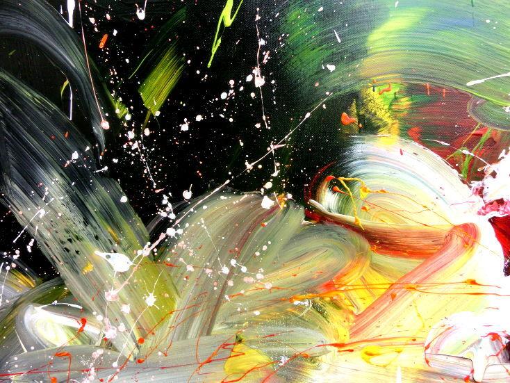 Dieses Werk ist wie alle meine Bilder: spontan entstanden, ganz intuitiv und ohne festes Konzept, und spiegelt oft meine momentane Stimmung wider wie auf der Leinwand festgehalten wurde.