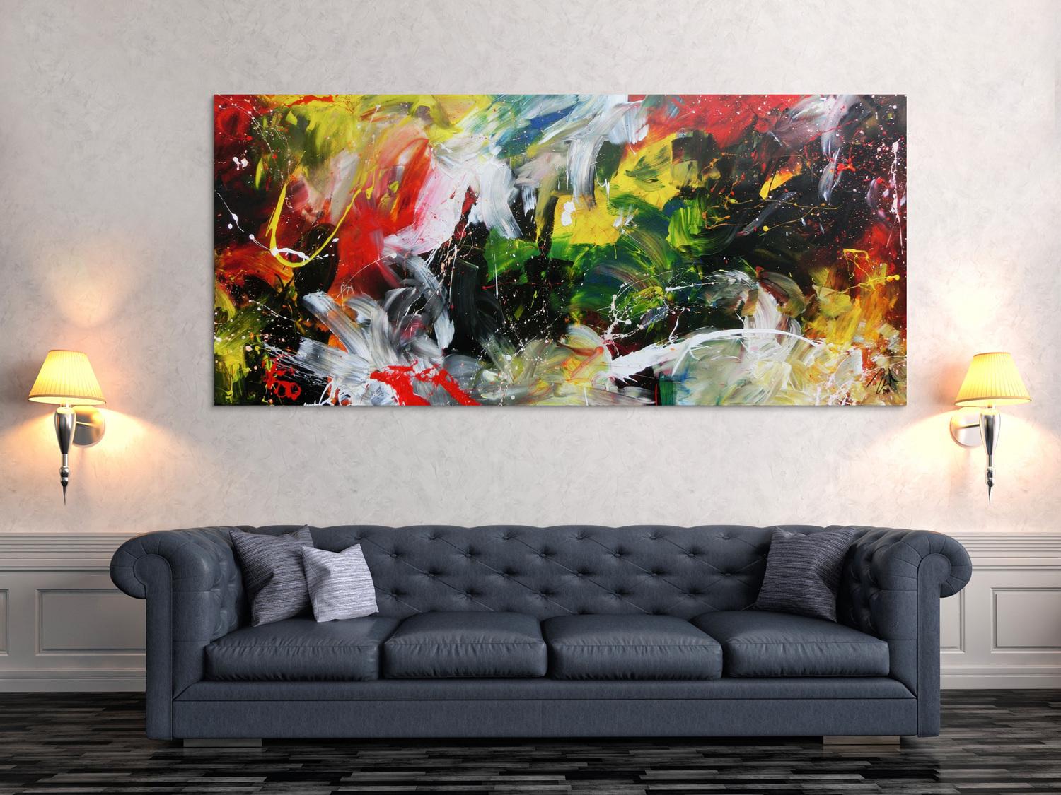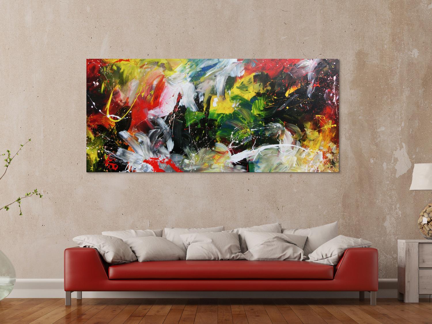 Die großformatigen, abstrakten Acrylgemälde sind ideal für Wohnzimmer, Schlafzimmer, Büros oder Geschäftsräume. Sie setzen farbenfrohe Akzente und schaffen eine lebendige, individuelle Atmosphäre die Sie und Ihre Gäste oder Kunden beeindrucken wird.