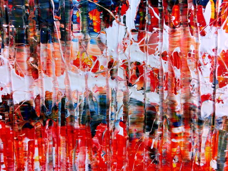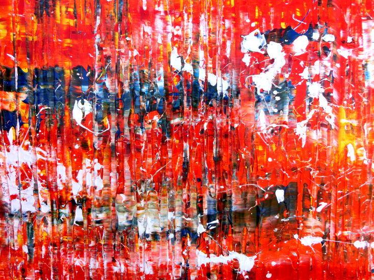 Hallo, ich bin Alex Zerr, der Künstler hinter diesem Gemälde. In meinem Atelier in Bad Lippspringe erschaffe ich abstrakte Acrylbilder, überwiegend im Action-Painting-Stil. Meißtens mit Acrylfarben und auf sehr großen XXL-Leinwänden, die meinem kreativen Prozess besonders viel Freiheit erlauben und oft zu beeindruckenden Gemälden führen.