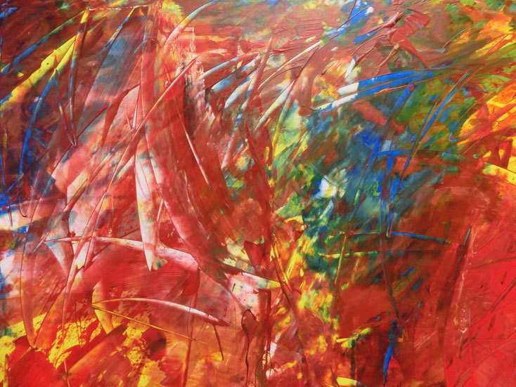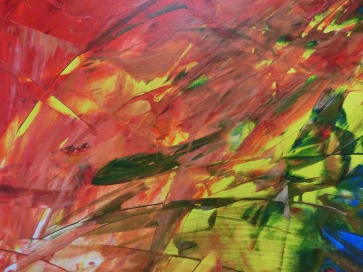 Dieses Werk ist wie alle meine Bilder: spontan entstanden, ganz intuitiv und ohne festes Konzept, und spiegelt oft meine momentane Stimmung wider wie auf der Leinwand festgehalten wurde.