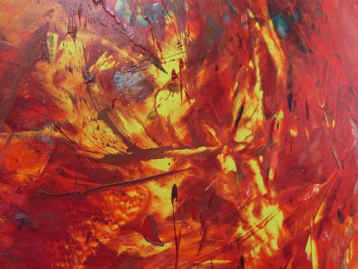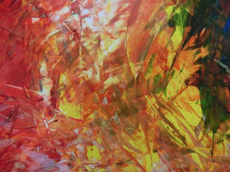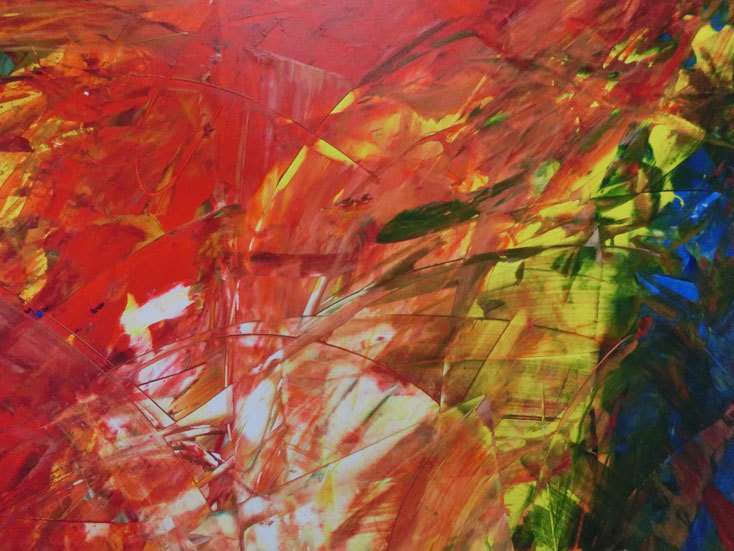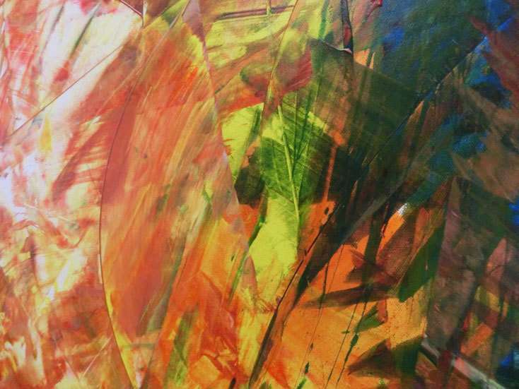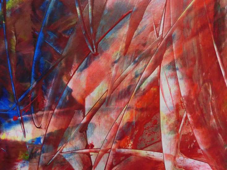 Dieses abstrakte Acrylbild ist ein handgemaltes Original vom Künstler Alex Zerr aus Bad Lisppringe und ist im Jahr 2015 in seinem Atelier entstanden. Das Bild hat eine Größe von 100x150cm und ist bereits auf einem hochwertigen und stabilem Rahmen aufgespannt. Dadurch kann das Bild nach der Lieferung direkt an die Wand gehängt werden und sofort in Ihrem Raum wirken. Alle Seiten des Gemäldes sind passend zum Motiv bemalt, so dass kein zusätzlicher Rahmen benötigt wird.