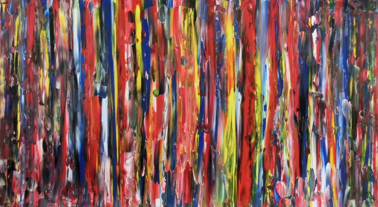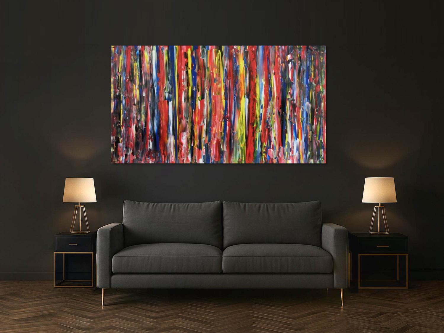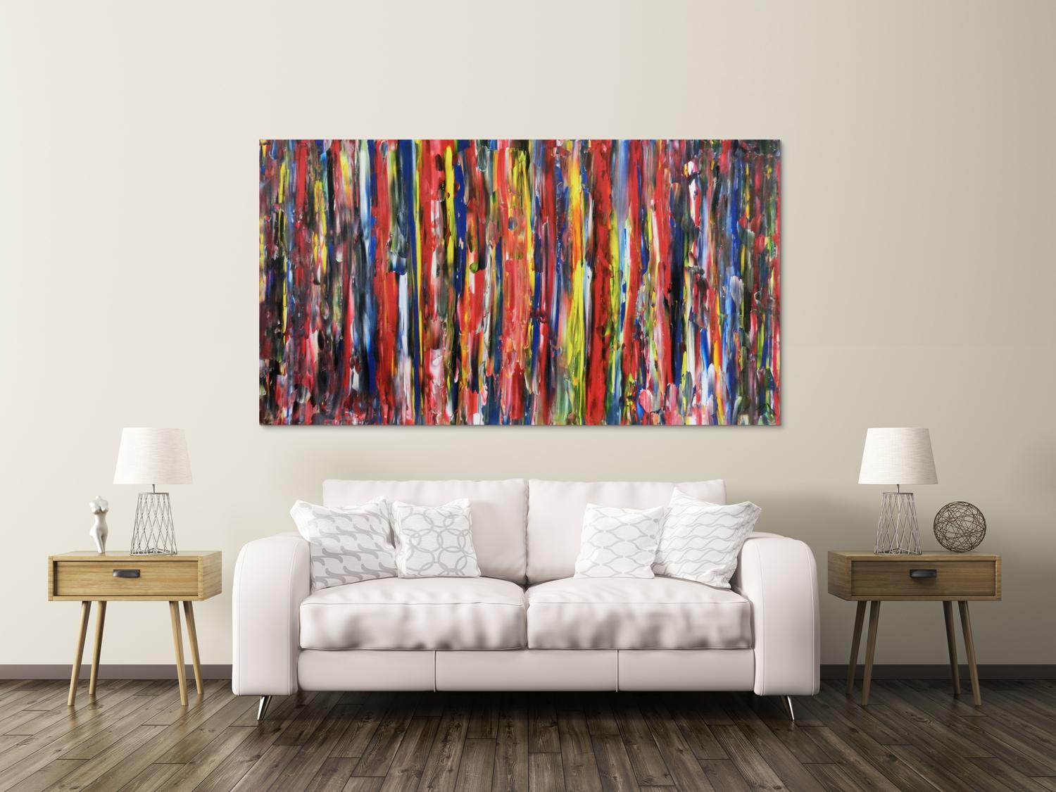 Abstraktes Gemälde auf Leinwand Modernes buntes Acrylbild abstrakt viele Farben in 100x200cm von Alex Zerr