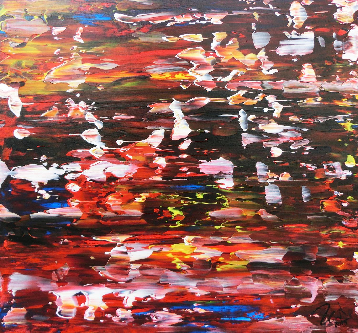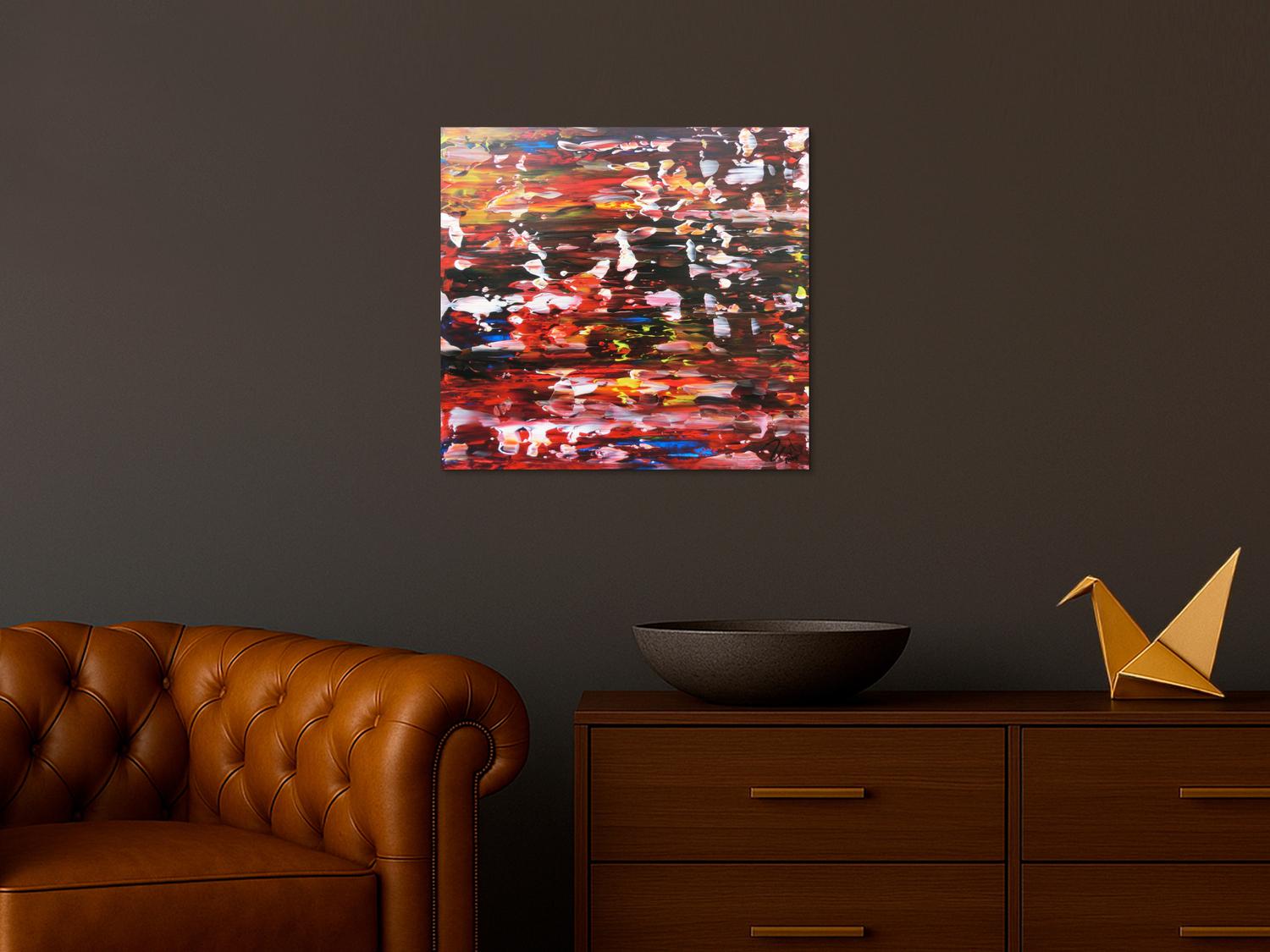 Dieses abstrakte Acrylbild ist ein handgemaltes Original vom Künstler Alex Zerr aus Bad Lisppringe und ist im Jahr 2015 in seinem Atelier entstanden. Das Bild hat eine Größe von 60x60cm und ist bereits auf einem hochwertigen und stabilem Rahmen aufgespannt. Dadurch kann das Bild nach der Lieferung direkt an die Wand gehängt werden und sofort in Ihrem Raum wirken. Alle Seiten des Gemäldes sind passend zum Motiv bemalt, so dass kein zusätzlicher Rahmen benötigt wird.
