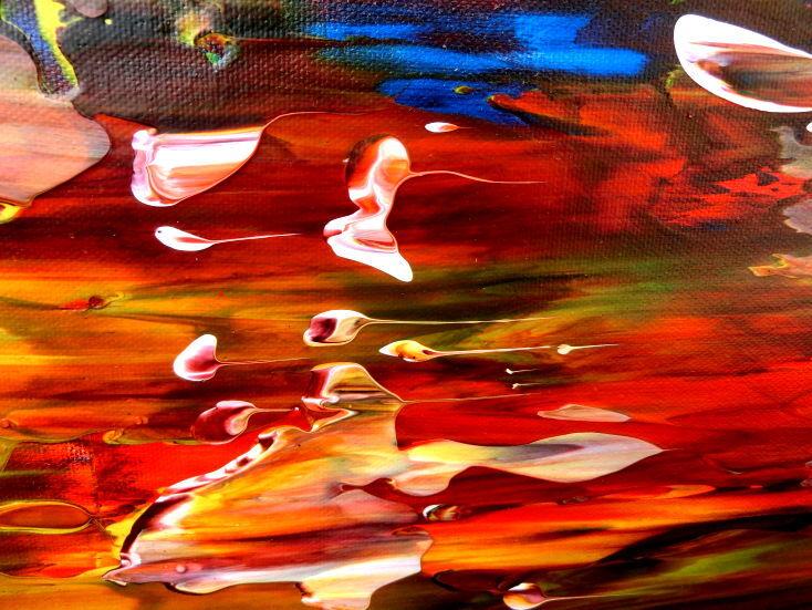 Dieses Werk ist wie alle meine Bilder: spontan entstanden, ganz intuitiv und ohne festes Konzept, und spiegelt oft meine momentane Stimmung wider wie auf der Leinwand festgehalten wurde.