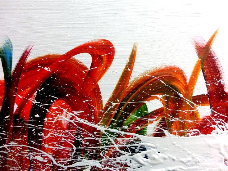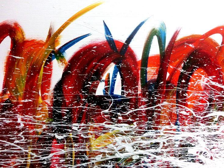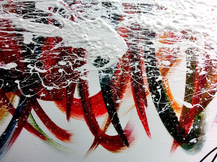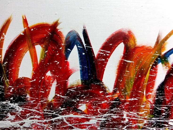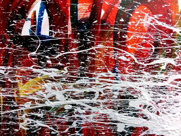 Dieses Werk ist wie alle meine Bilder: spontan entstanden, ganz intuitiv und ohne festes Konzept, und spiegelt oft meine momentane Stimmung wider wie auf der Leinwand festgehalten wurde.