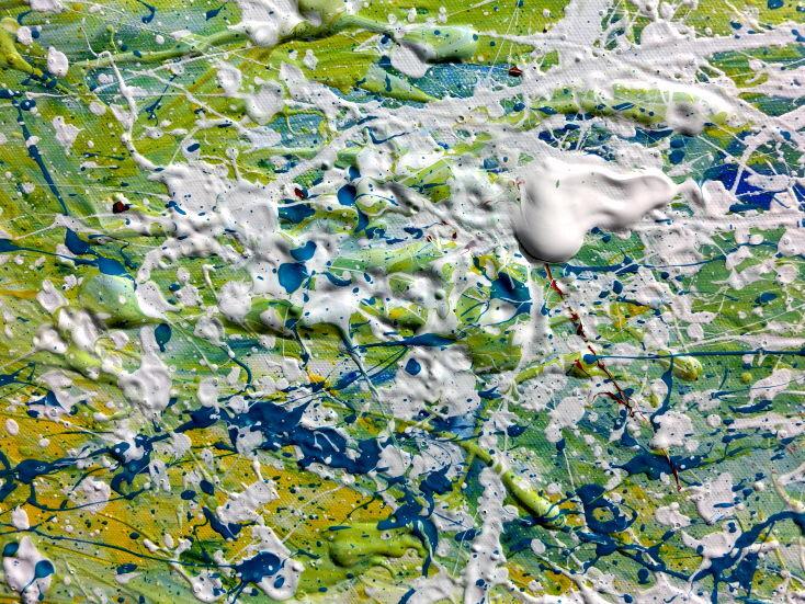 Hallo, ich bin Alex Zerr, der Künstler hinter diesem Gemälde. In meinem Atelier in Bad Lippspringe erschaffe ich abstrakte Acrylbilder, überwiegend im Action-Painting-Stil. Meißtens mit Acrylfarben und auf sehr großen XXL-Leinwänden, die meinem kreativen Prozess besonders viel Freiheit erlauben und oft zu beeindruckenden Gemälden führen.