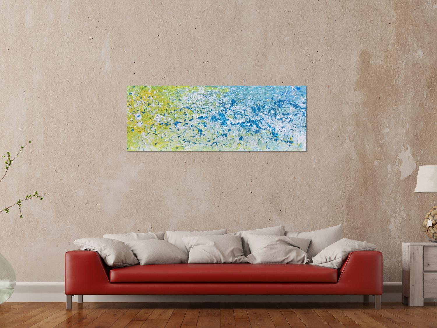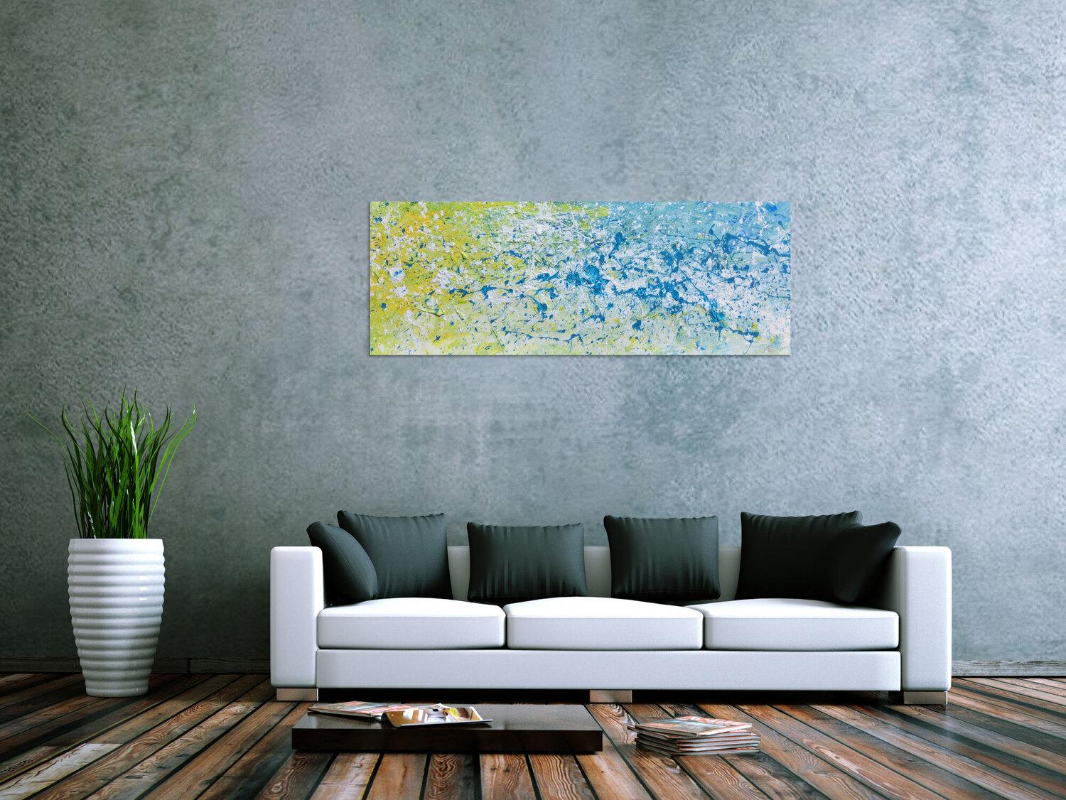 Abstraktes Gemälde auf Leinwand Modernes Gemälde abstrakt helle Farben bunt in 50x140cm von Alex Zerr