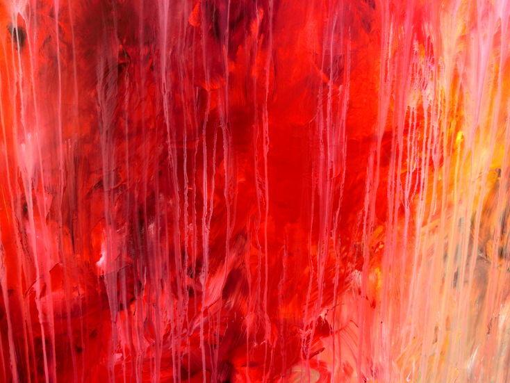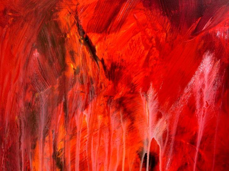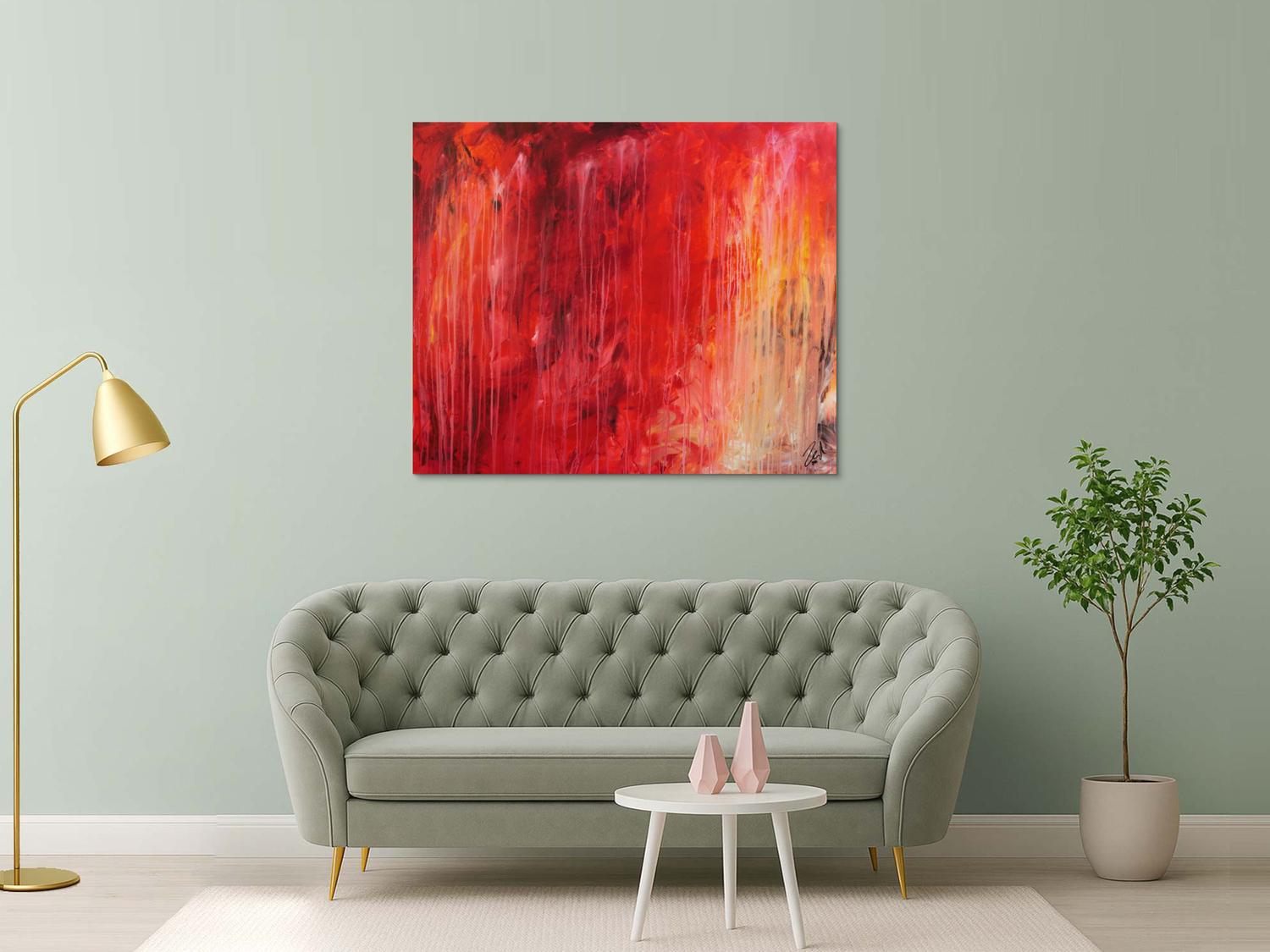 Modernes Gemälde abstrakt mit sehr viel rot und warmen Farben