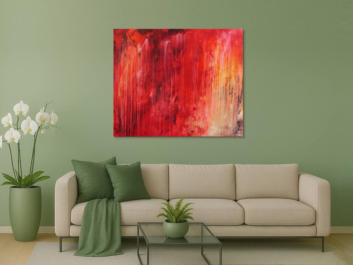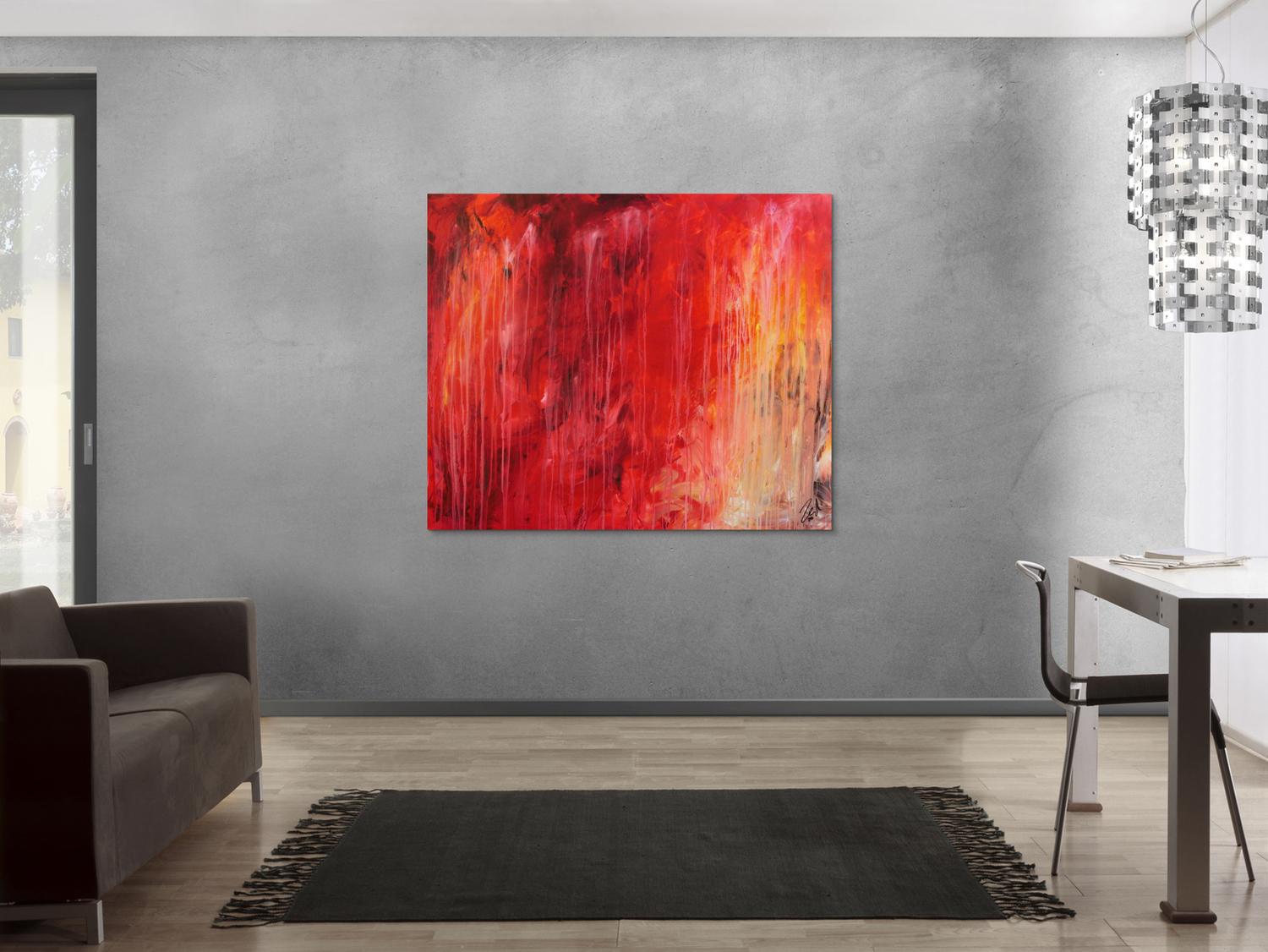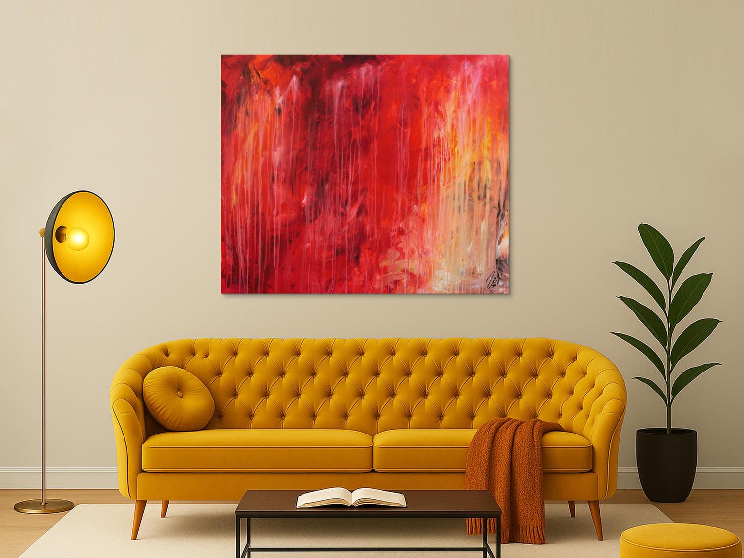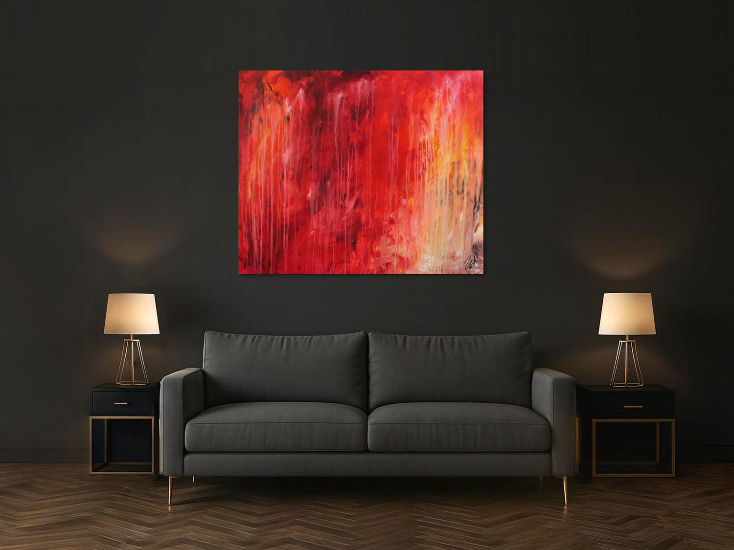 Abstraktes Gemälde auf Leinwand Modernes Gemälde abstrakt mit sehr viel rot und warmen Farben in 120x140cm von Alex Zerr