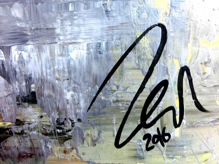 Dieses abstrakte Acrylbild ist ein handgemaltes Original vom Künstler Alex Zerr aus Bad Lisppringe und ist im Jahr 2016 in seinem Atelier entstanden. Das Bild hat eine Größe von 130x120cm und ist bereits auf einem hochwertigen und stabilem Rahmen aufgespannt. Dadurch kann das Bild nach der Lieferung direkt an die Wand gehängt werden und sofort in Ihrem Raum wirken. Alle Seiten des Gemäldes sind passend zum Motiv bemalt, so dass kein zusätzlicher Rahmen benötigt wird.