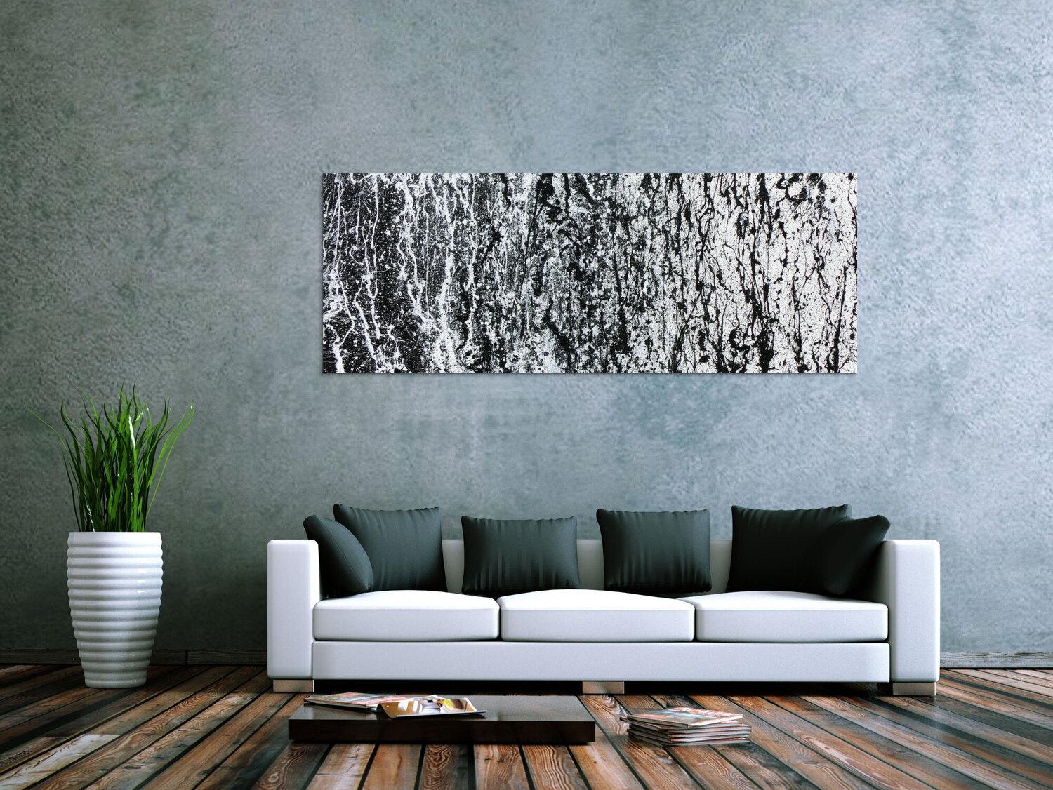 Abstraktes Gemälde auf Leinwand Modernes Gemälde abstrakt schlicht schwarz weiß in 70x180cm von Alex Zerr