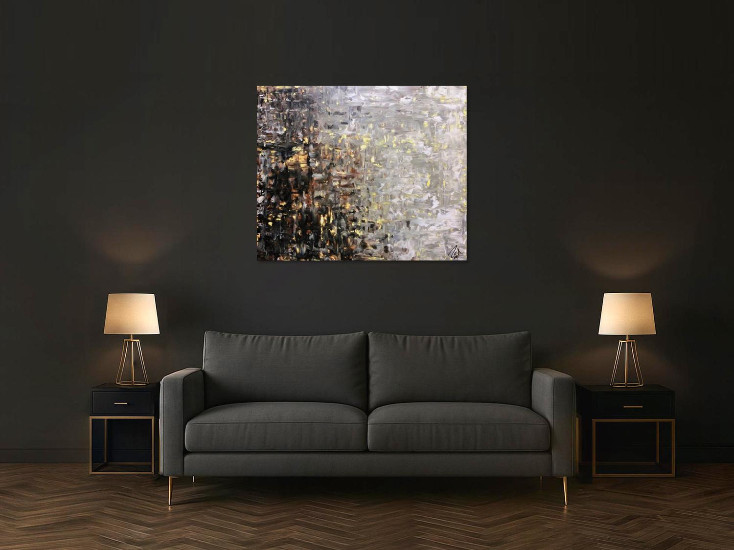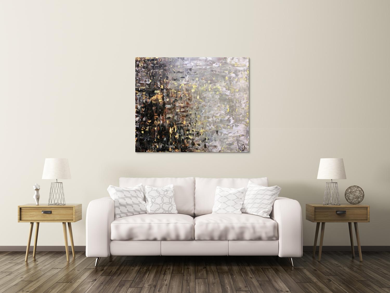 Dieses abstrakte Acrylbild ist ein handgemaltes Original vom Künstler Alex Zerr aus Bad Lisppringe und ist im Jahr 2017 in seinem Atelier entstanden. Das Bild hat eine Größe von 100x120cm und ist bereits auf einem hochwertigen und stabilem Rahmen aufgespannt. Dadurch kann das Bild nach der Lieferung direkt an die Wand gehängt werden und sofort in Ihrem Raum wirken. Alle Seiten des Gemäldes sind passend zum Motiv bemalt, so dass kein zusätzlicher Rahmen benötigt wird.