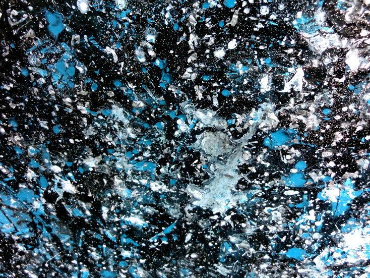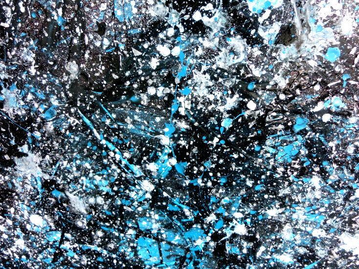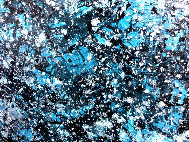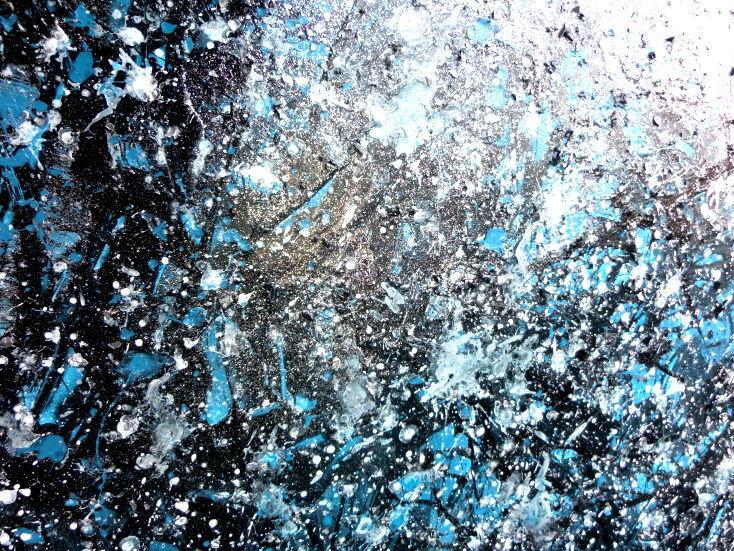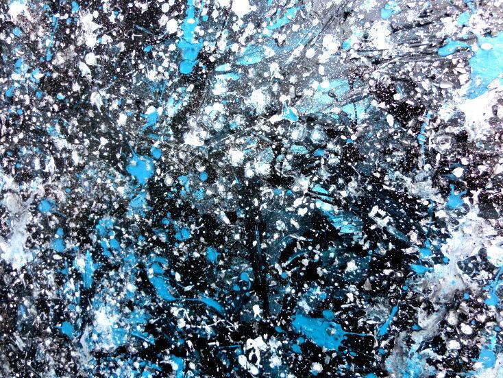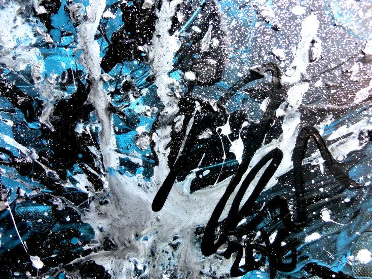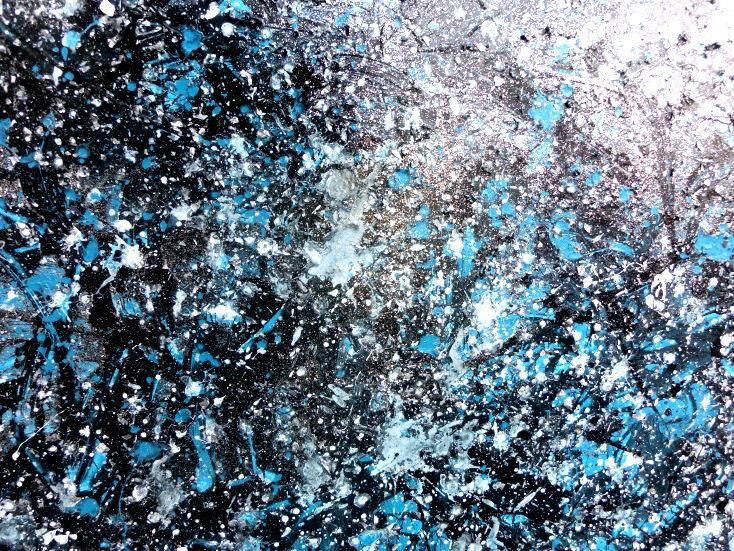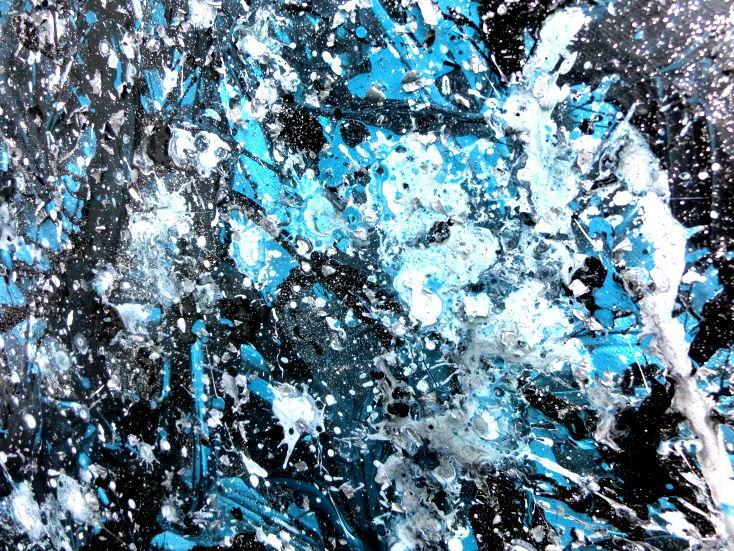 Modernes Gemälde abstraktes Acrylbild blau türkis mit glitzer und silber