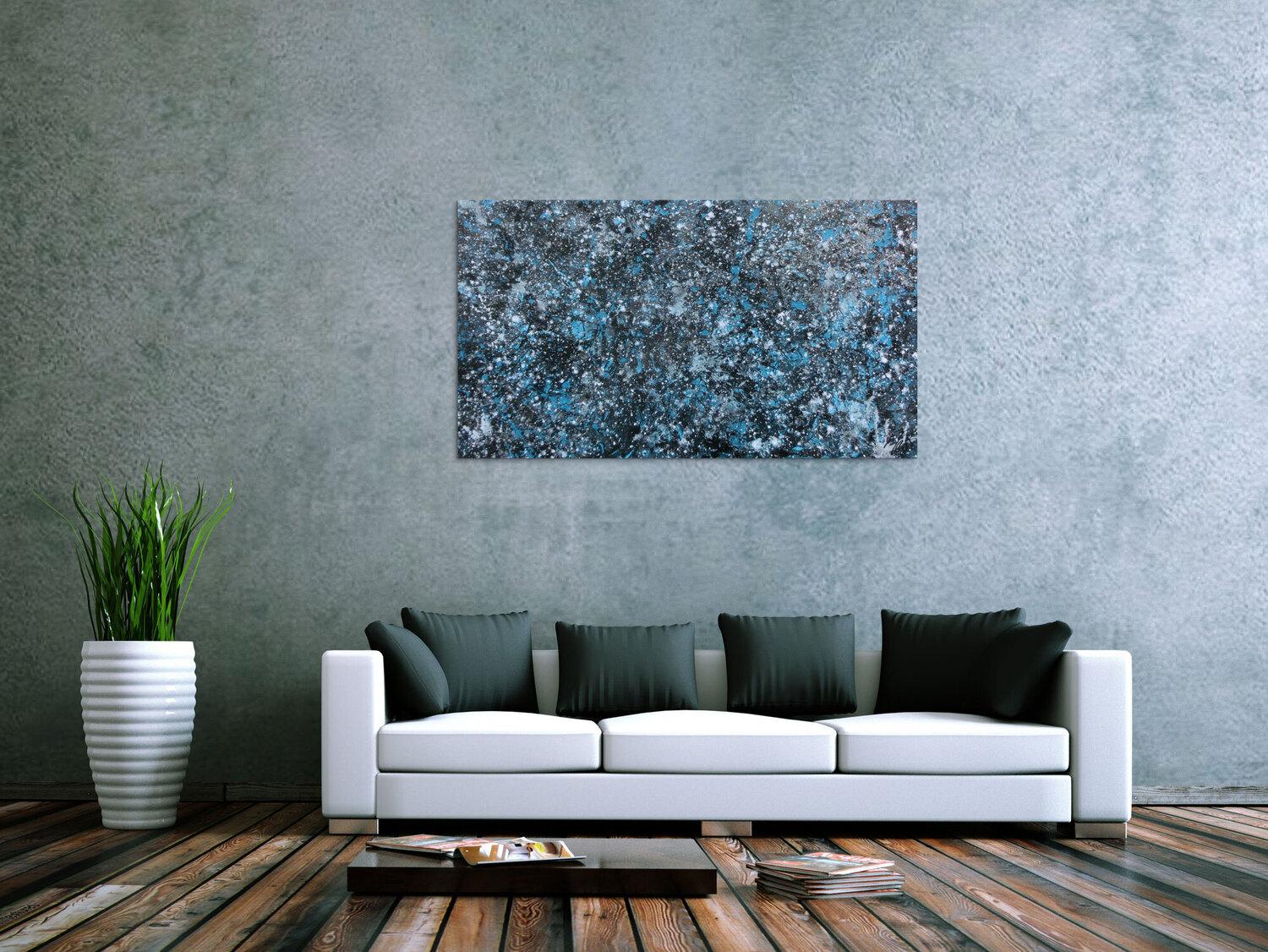 Abstraktes Gemälde auf Leinwand Modernes Gemälde abstraktes Acrylbild blau türkis mit glitzer und silber in 80x130cm von Alex Zerr