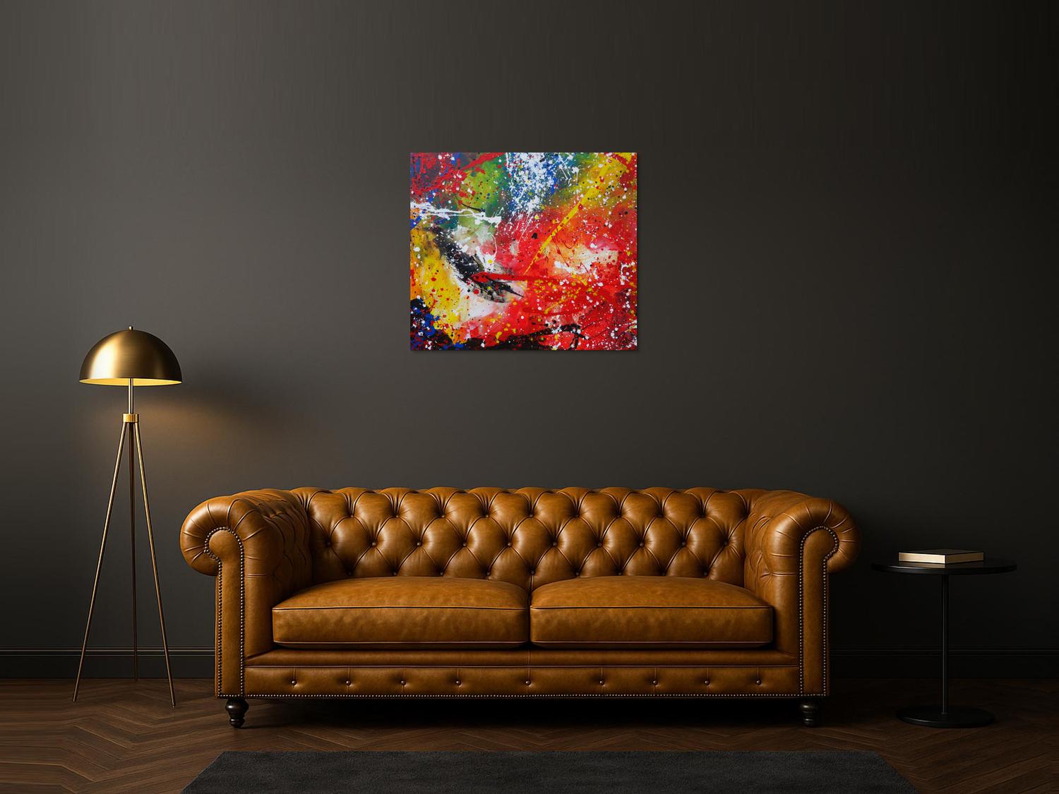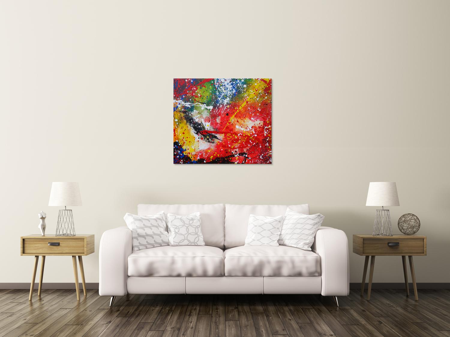 Abstraktes Gemälde auf Leinwand Modernes Gemälde abstraktes Acrylbild sehr bunt Action Painting handgemalt in 80x90cm von Alex Zerr