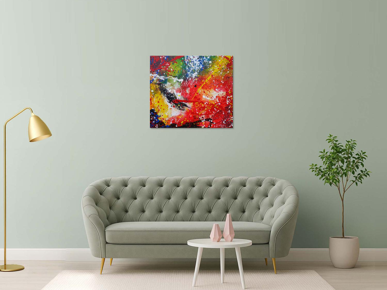 Modernes Gemälde abstraktes Acrylbild sehr bunt Action Painting handgemalt