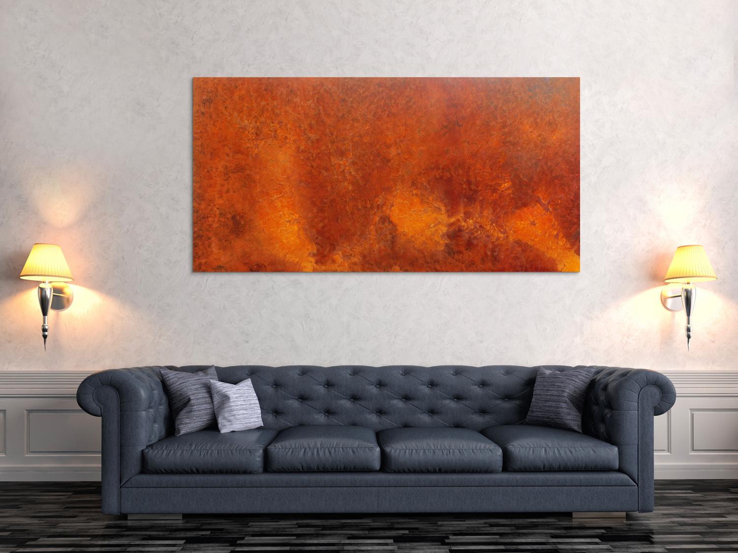 Kunst aus Rost. Abstrakte Bilder aus echtem Rost auf Leinwand.