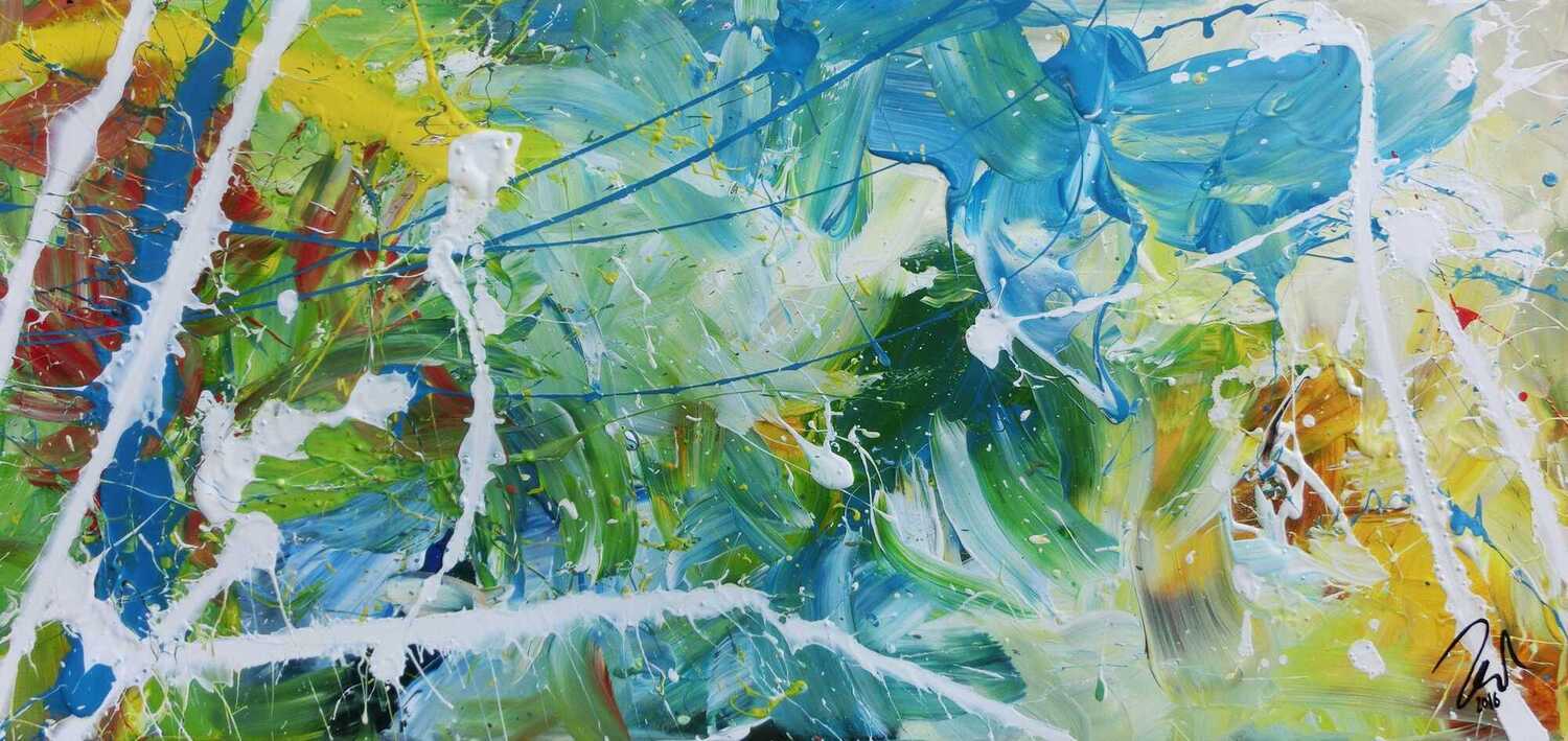 Dieses abstrakte Acrylbild ist ein handgemaltes Original vom Künstler Alex Zerr aus Bad Lisppringe und ist im Jahr 2016 in seinem Atelier entstanden. Das Bild hat eine Größe von 60x130cm und ist bereits auf einem hochwertigen und stabilem Rahmen aufgespannt. Dadurch kann das Bild nach der Lieferung direkt an die Wand gehängt werden und sofort in Ihrem Raum wirken. Alle Seiten des Gemäldes sind passend zum Motiv bemalt, so dass kein zusätzlicher Rahmen benötigt wird.