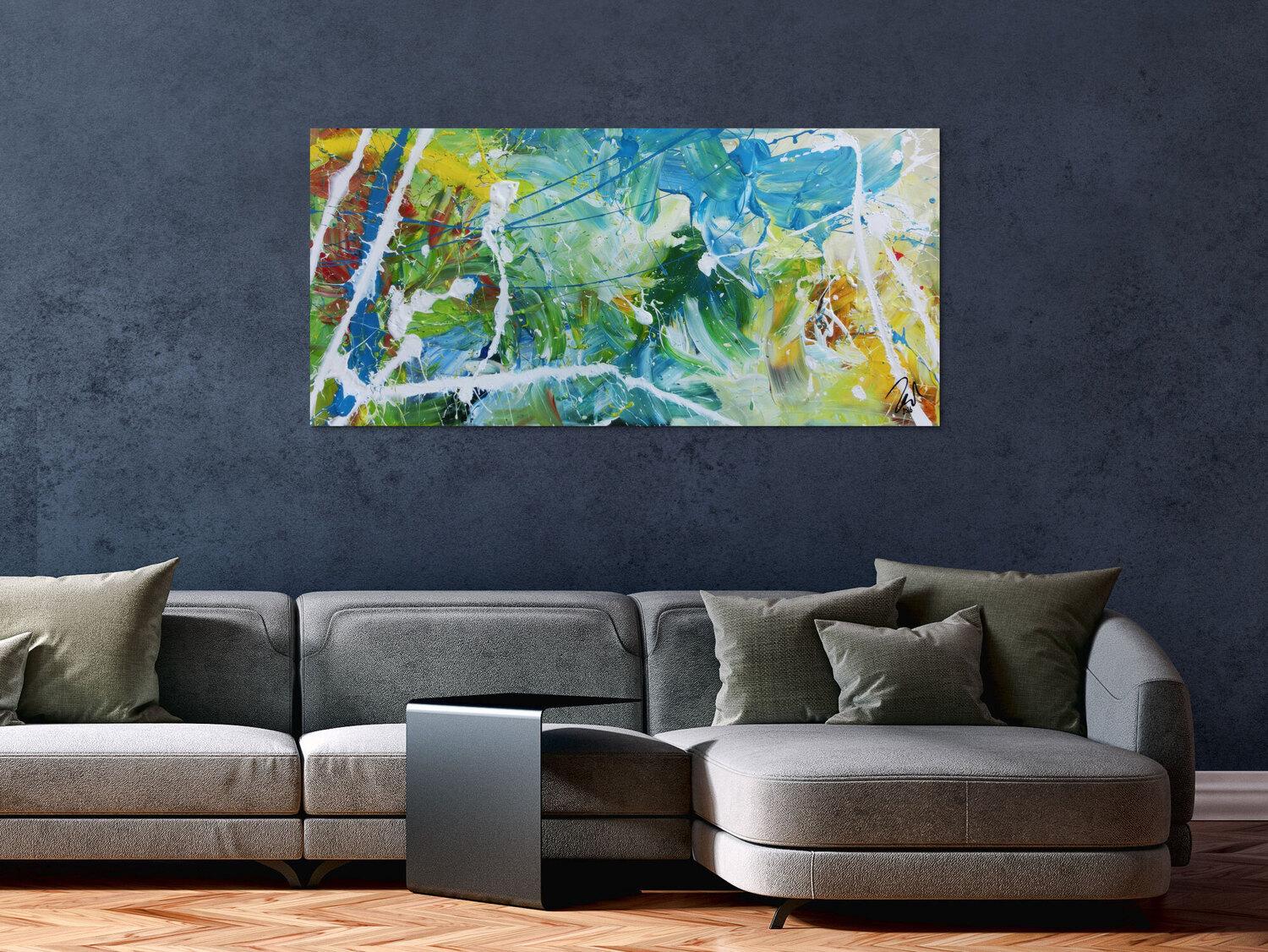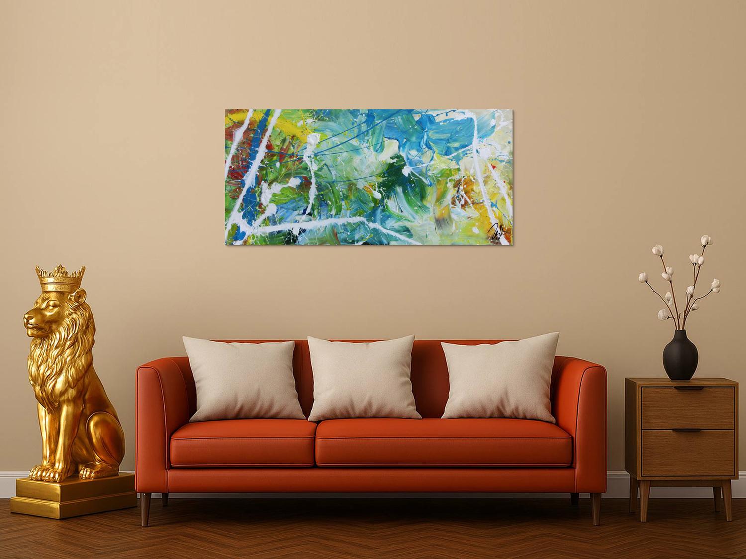 Abstraktes Gemälde auf Leinwand Modernes helles abstraktes Acrylgemälde bunt mit viel weiß und türkis in 60x130cm von Alex Zerr