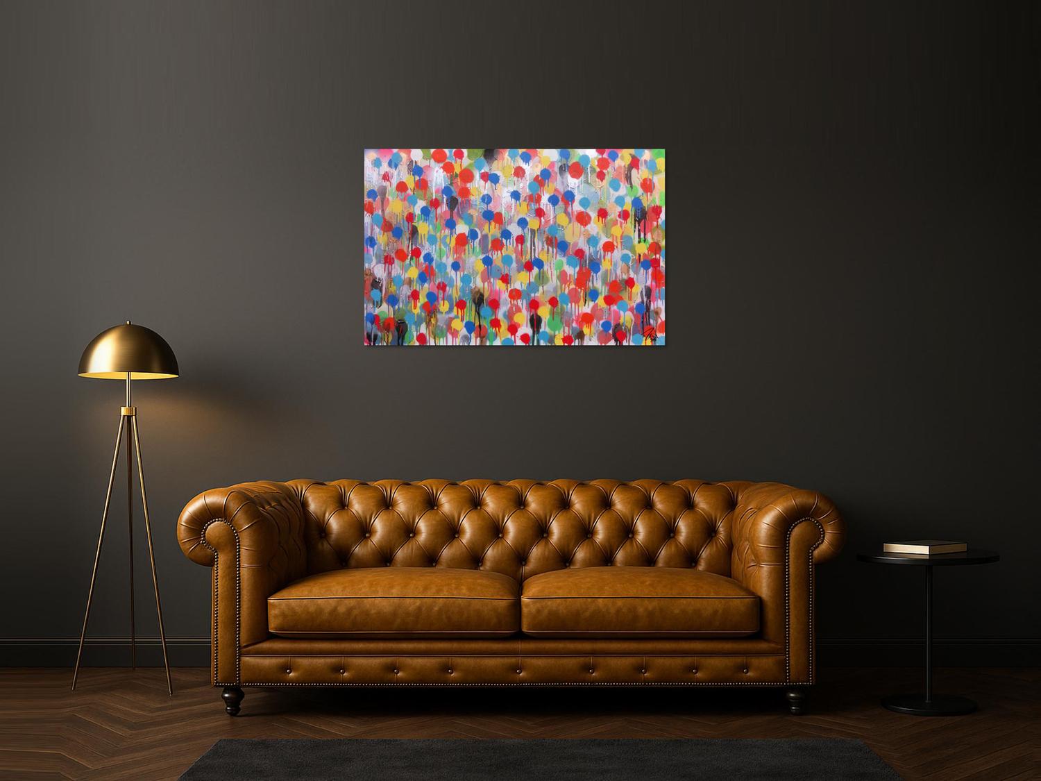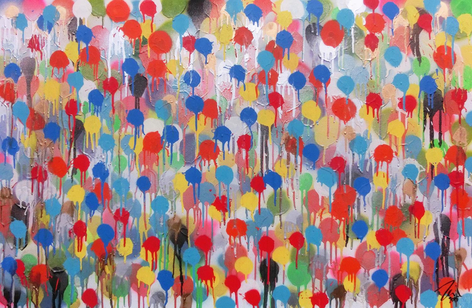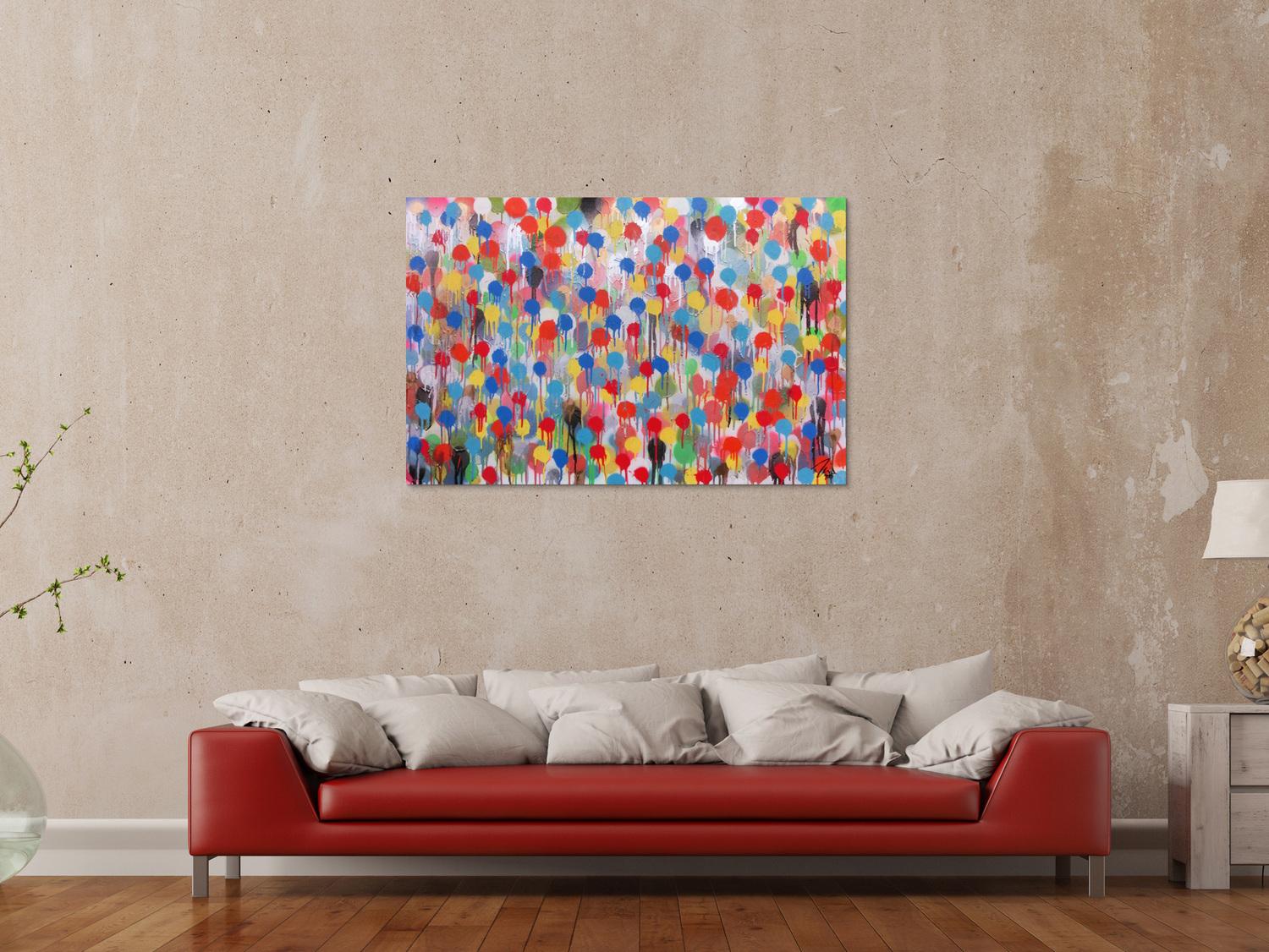 Abstraktes Gemälde auf Leinwand Modernes Kunstwerk abstrakt mit vielen Farben bunte Punkte aus Spraydose in 80x120cm von Alex Zerr