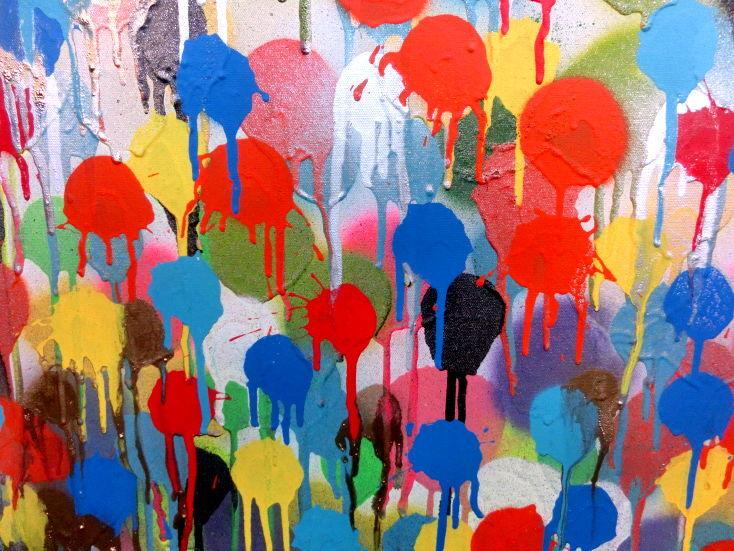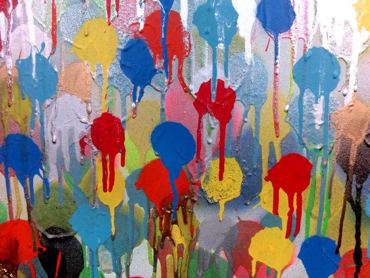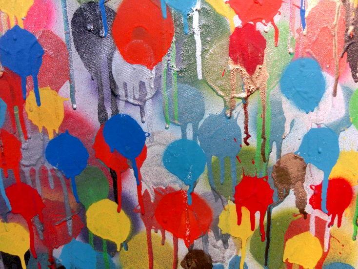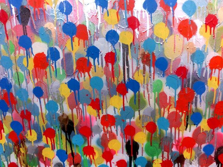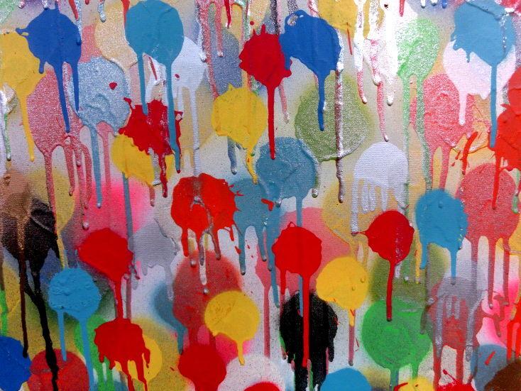 Modernes Kunstwerk abstrakt mit vielen Farben bunte Punkte aus Spraydose