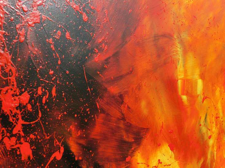 Dieses abstrakte Acrylbild ist ein handgemaltes Original vom Künstler Alex Zerr aus Bad Lisppringe und ist im Jahr 2015 in seinem Atelier entstanden. Das Bild hat eine Größe von 100x150cm und ist bereits auf einem hochwertigen und stabilem Rahmen aufgespannt. Dadurch kann das Bild nach der Lieferung direkt an die Wand gehängt werden und sofort in Ihrem Raum wirken. Alle Seiten des Gemäldes sind passend zum Motiv bemalt, so dass kein zusätzlicher Rahmen benötigt wird.