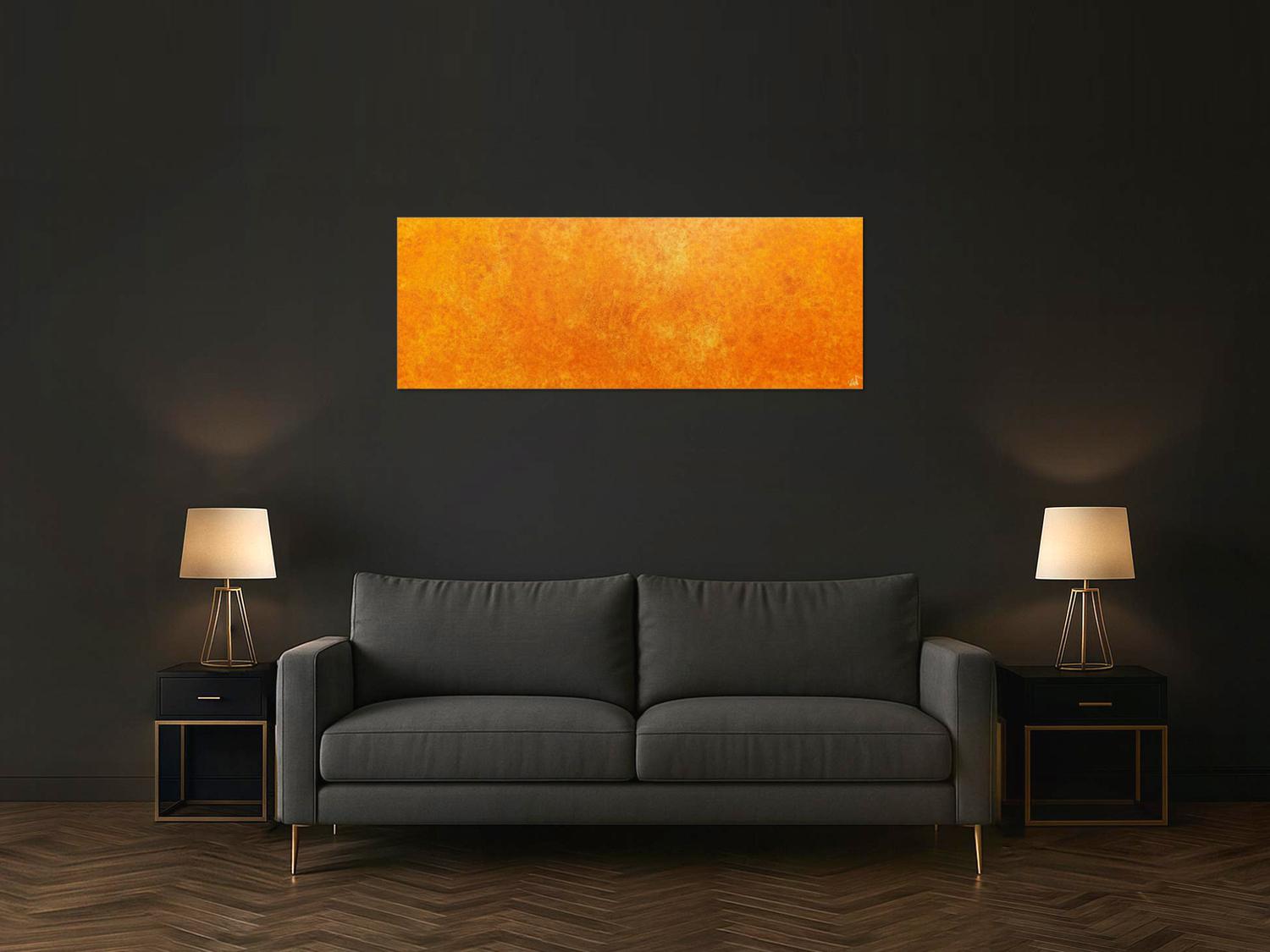 Abstraktes Gemälde auf Leinwand Oranges Acrylbild mit spannendem Muster in 60x150cm von Alex Zerr