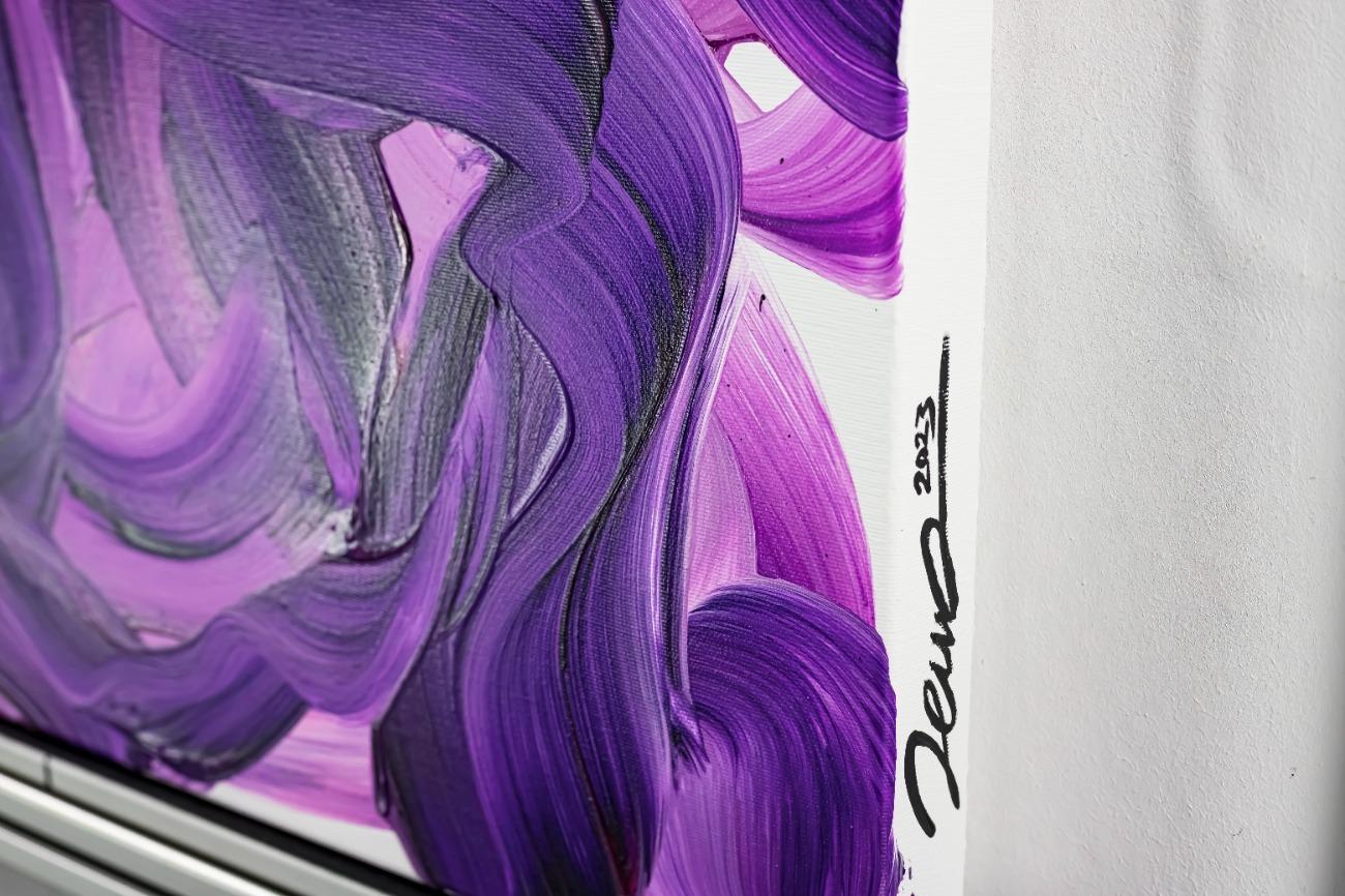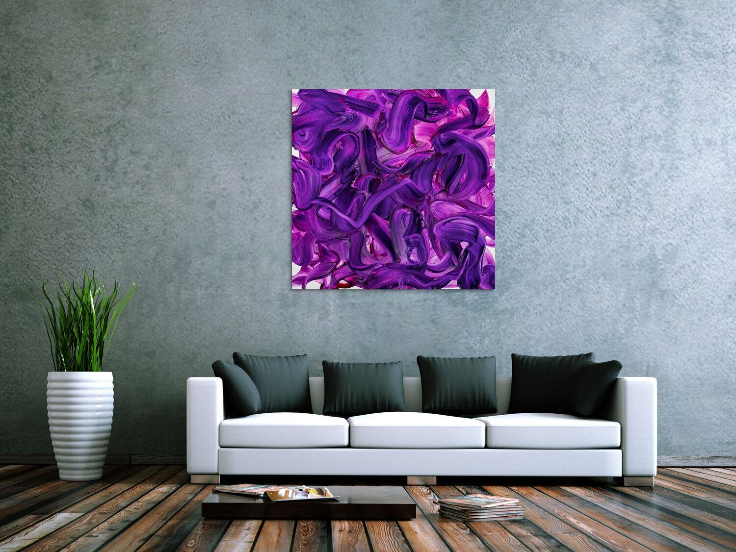 Original Gemälde abstrakt 100x100cm Action Painting expressionistisch handgemalt Mischtechnik violett rosa hochwertig