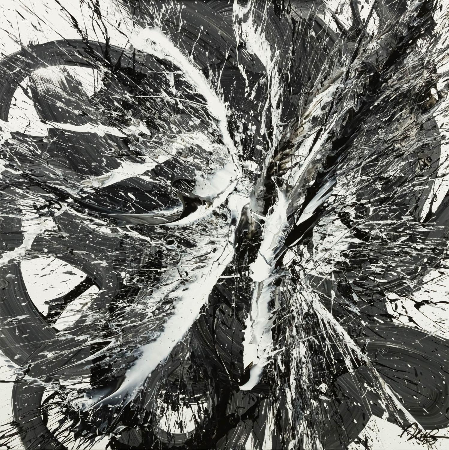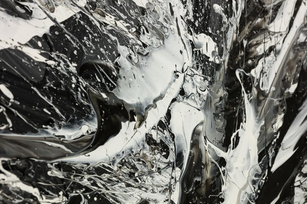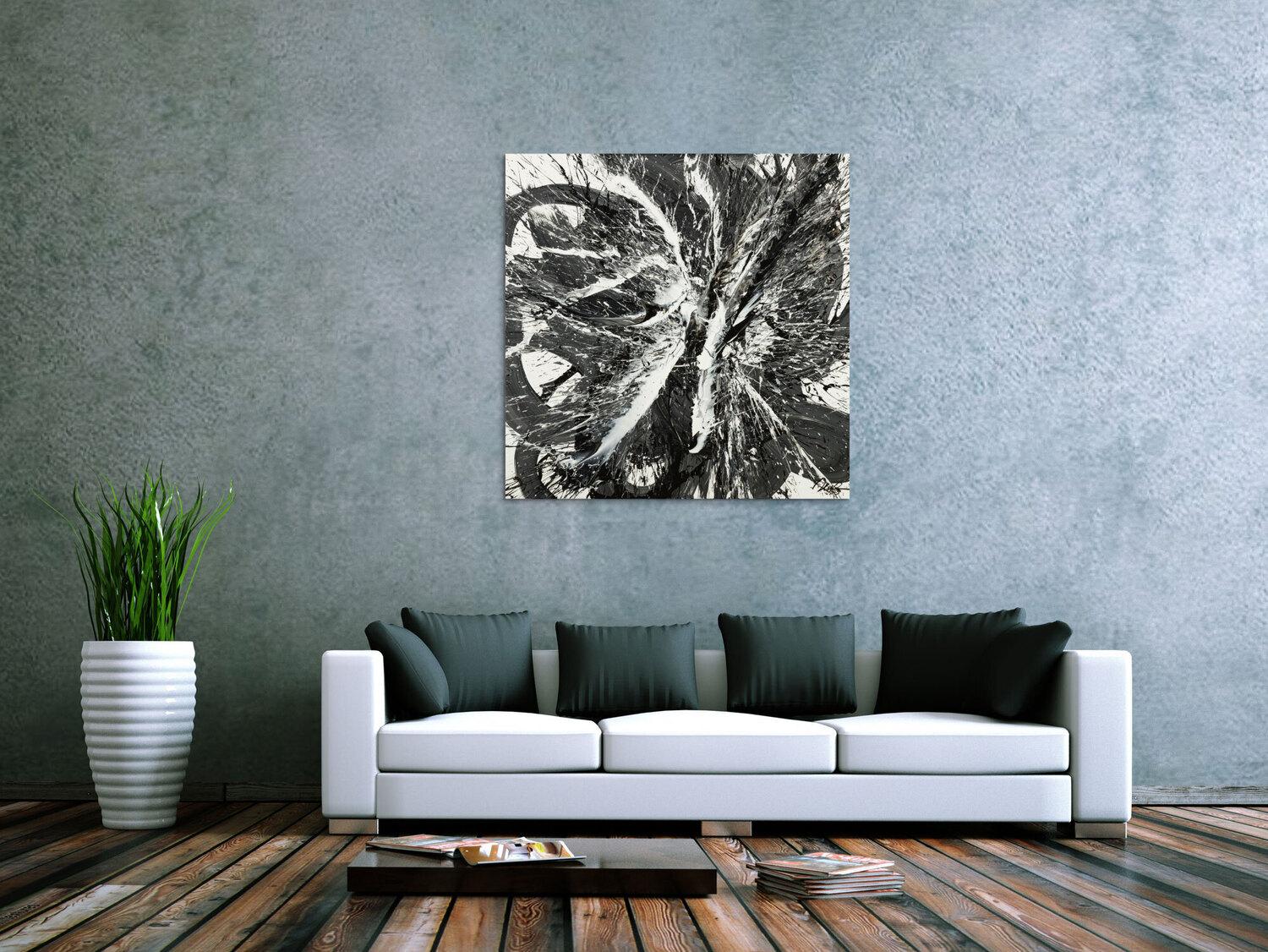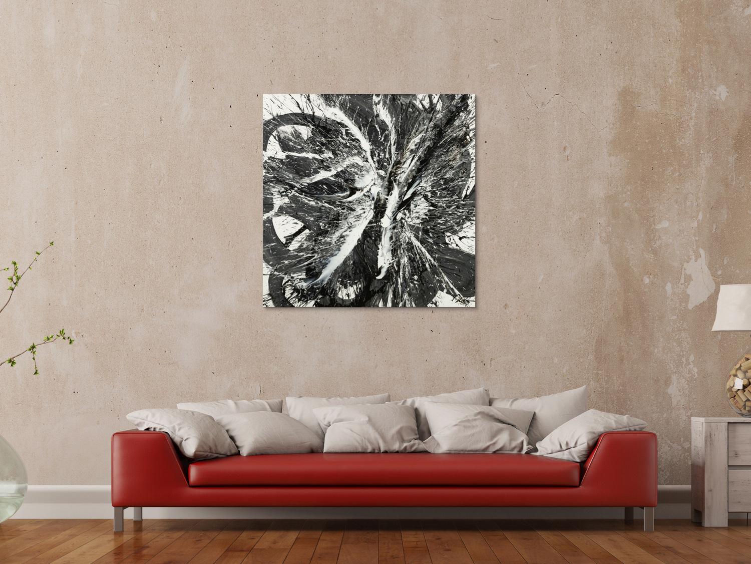 Original Gemälde abstrakt 100x100cm Action Painting Moderne Kunst handgemalt Splash Art schwarz weiss einzigartig