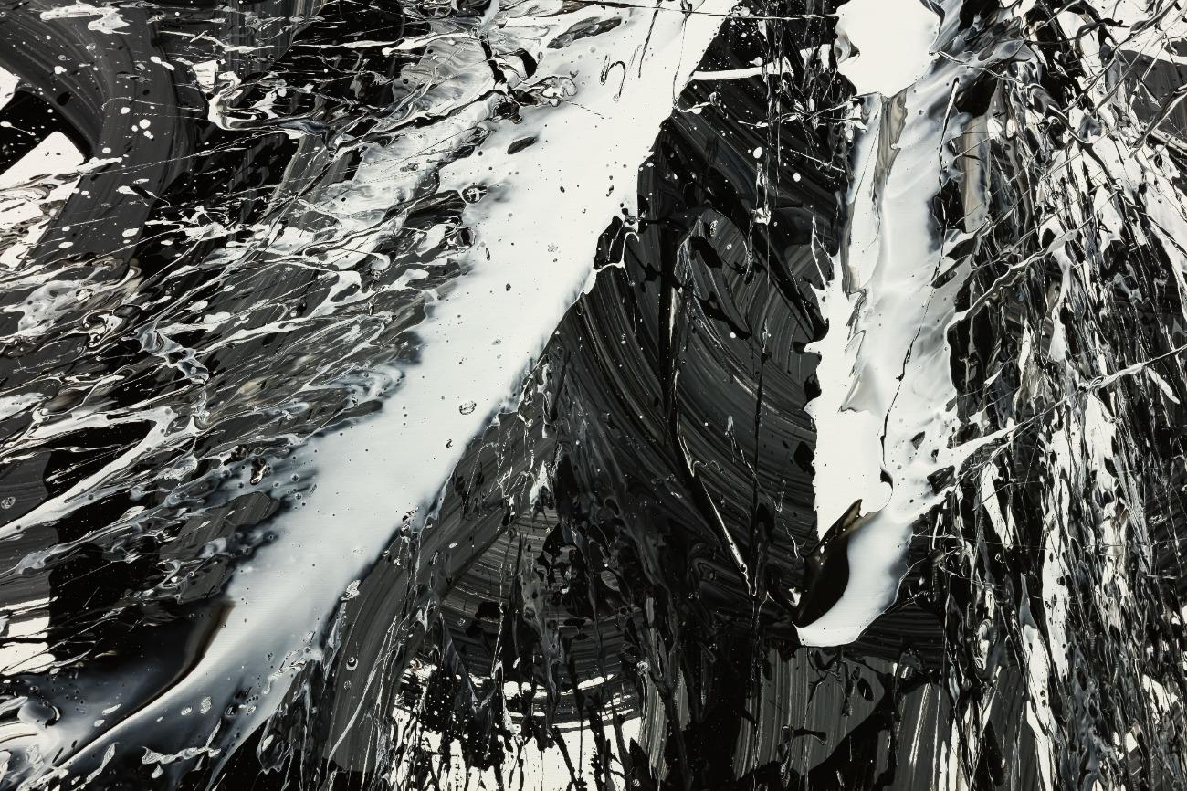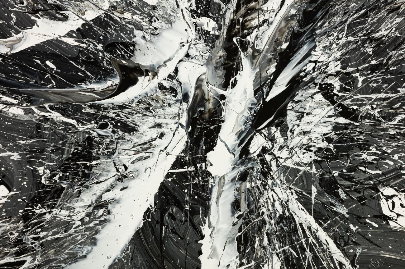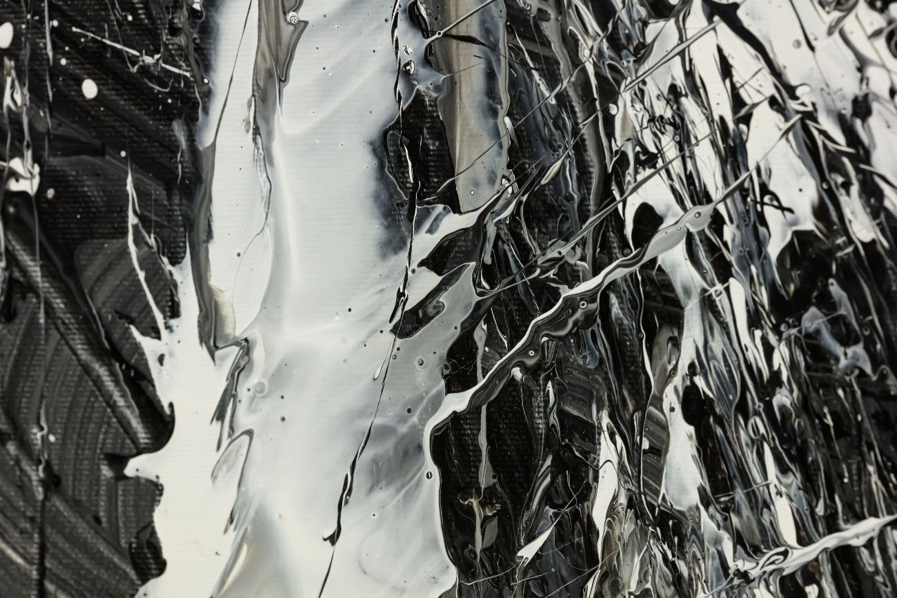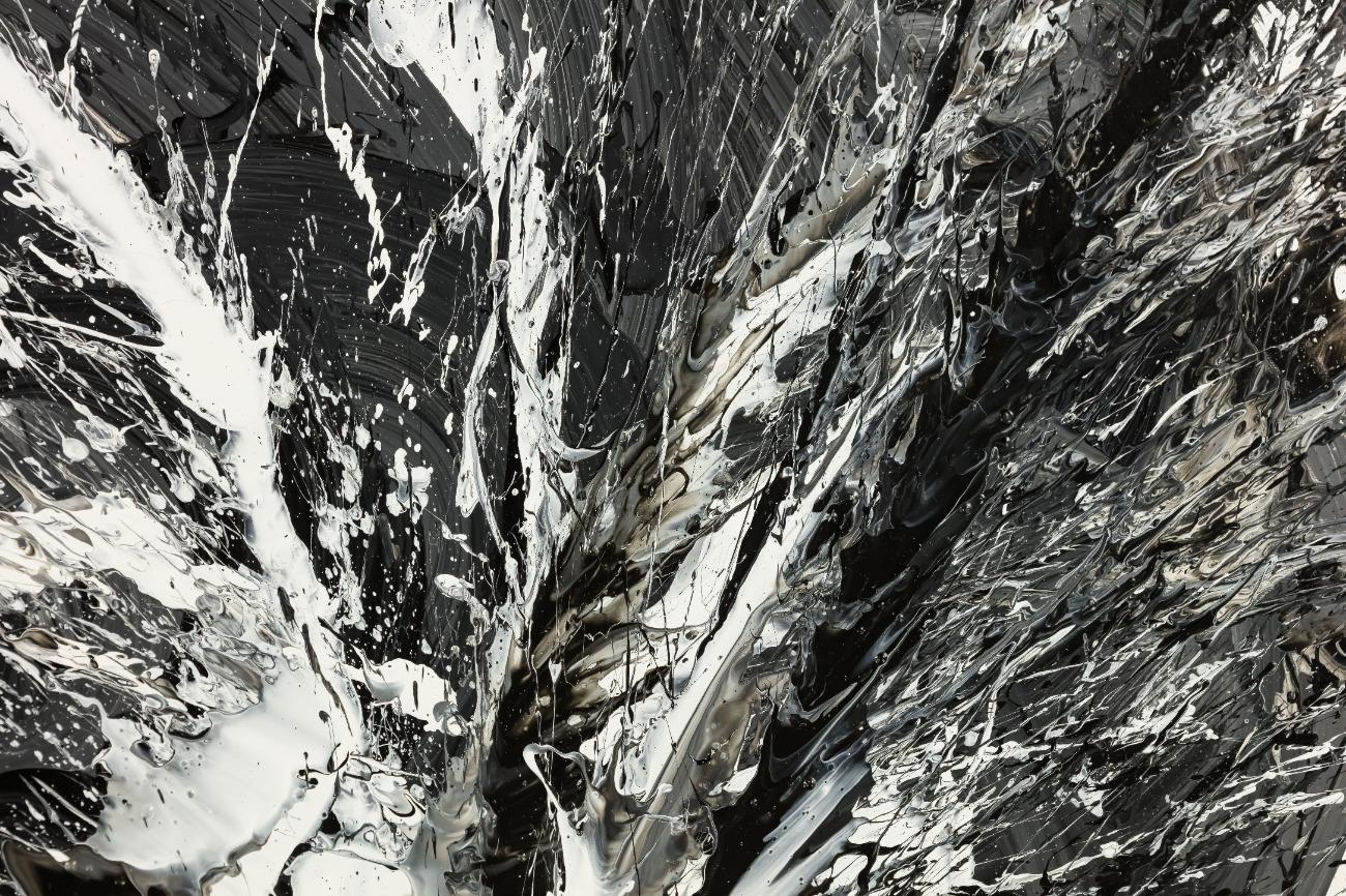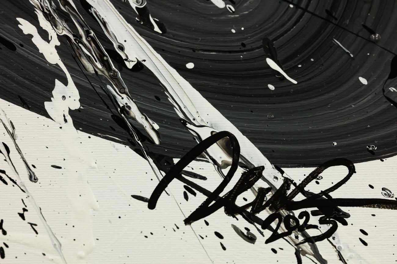 Original Gemälde abstrakt 100x100cm Action Painting Moderne Kunst handgemalt Splash Art schwarz weiss einzigartig
