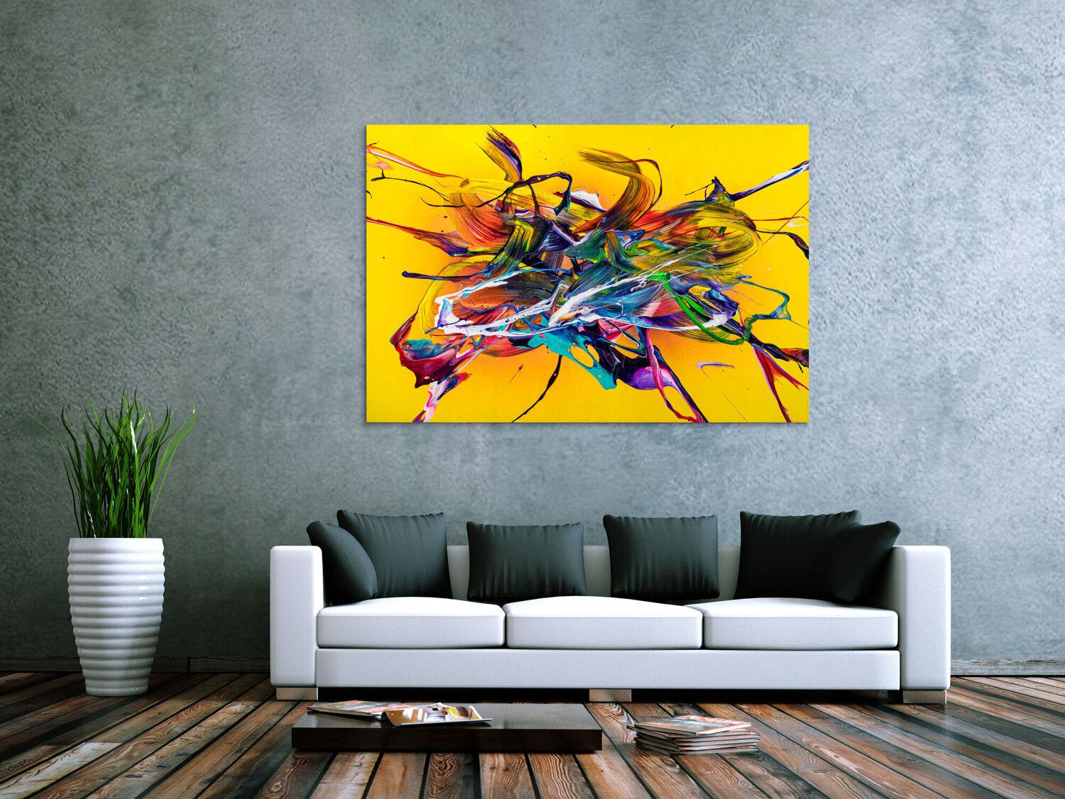 Die großformatigen, abstrakten Acrylgemälde sind ideal für Wohnzimmer, Schlafzimmer, Büros oder Geschäftsräume. Sie setzen farbenfrohe Akzente und schaffen eine lebendige, individuelle Atmosphäre die Sie und Ihre Gäste oder Kunden beeindrucken wird.