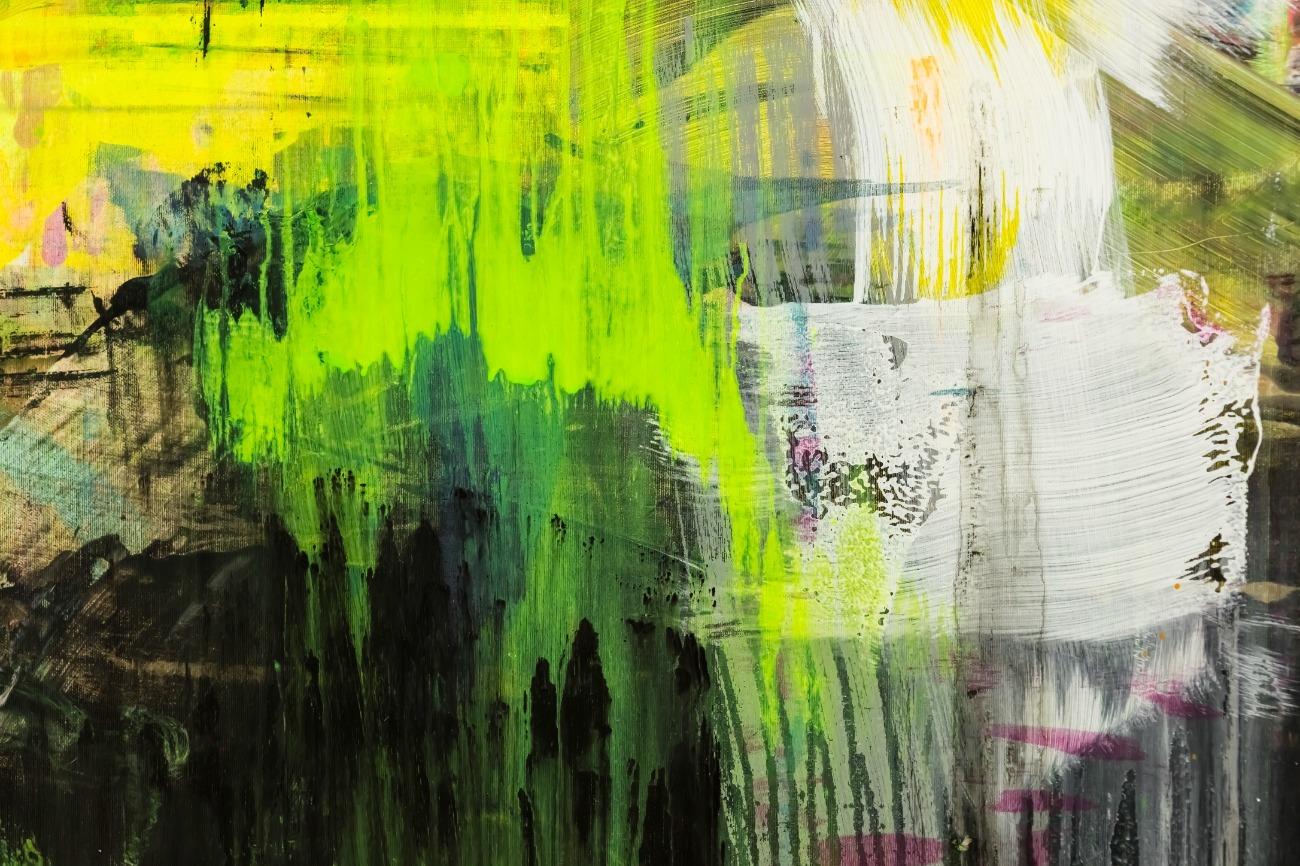 Abstraktes Gemälde auf Leinwand Original Gemälde abstrakt 100x180cm Mischtechnik Modern Art handgefertigt Mischtechnik schwarz gelb weiß NEON in 100x180cm von Alex Zerr