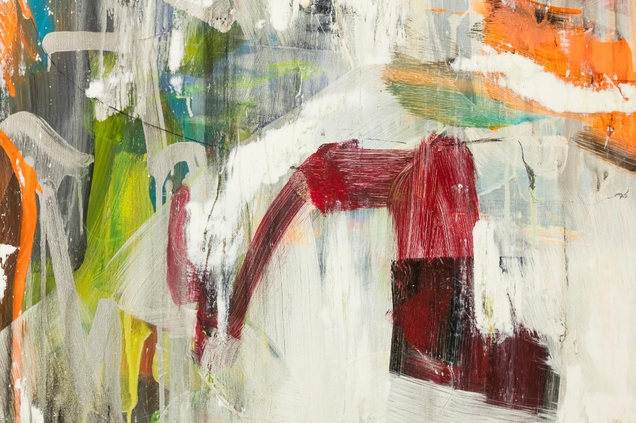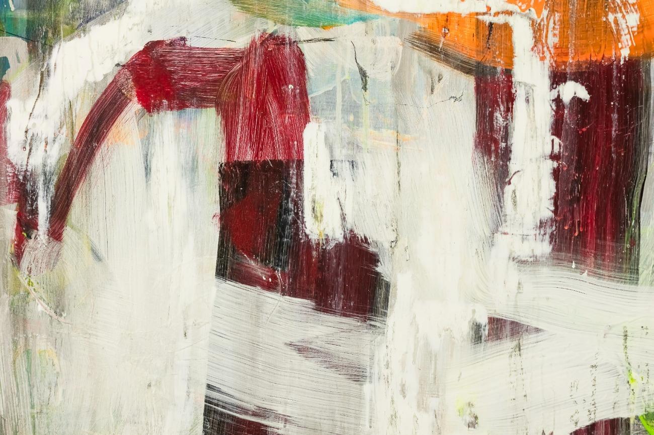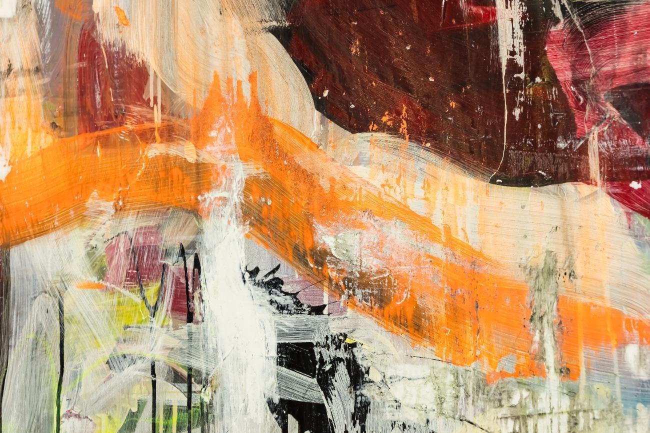 Abstraktes Gemälde auf Leinwand Original Gemälde abstrakt 100x200cm Action Painting expressionistisch handgefertigt Mischtechnik weiß beige orange Unikat in 100x200cm von Alex Zerr