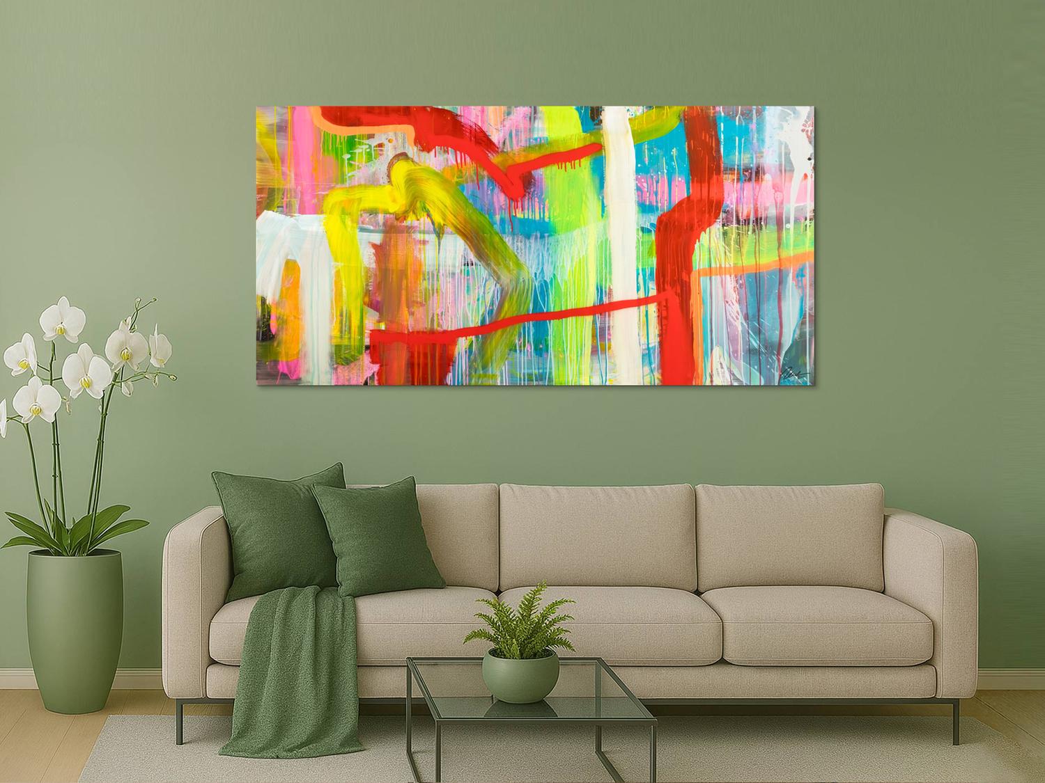 Die großformatigen, abstrakten Acrylgemälde sind ideal für Wohnzimmer, Schlafzimmer, Büros oder Geschäftsräume. Sie setzen farbenfrohe Akzente und schaffen eine lebendige, individuelle Atmosphäre die Sie und Ihre Gäste oder Kunden beeindrucken wird.