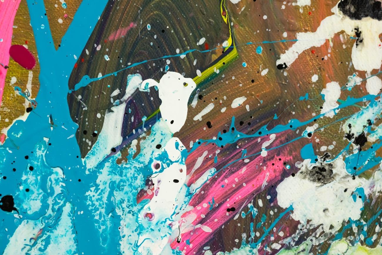 Hallo, ich bin Alex Zerr, der Künstler hinter diesem Gemälde. In meinem Atelier in Bad Lippspringe erschaffe ich abstrakte Acrylbilder, überwiegend im Action-Painting-Stil. Meißtens mit Acrylfarben und auf sehr großen XXL-Leinwänden, die meinem kreativen Prozess besonders viel Freiheit erlauben und oft zu beeindruckenden Gemälden führen.