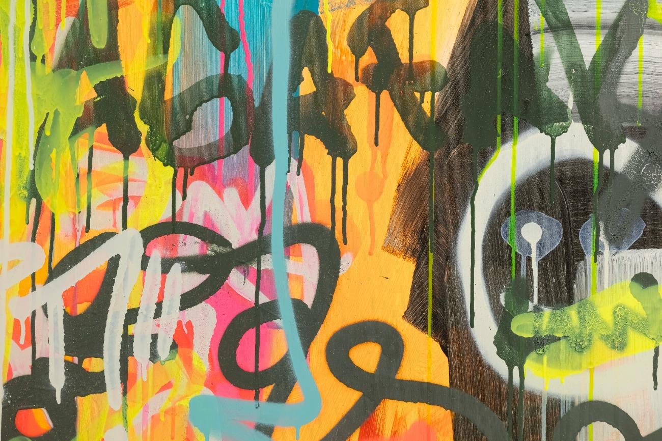 Hallo, ich bin Alex Zerr, der Künstler hinter diesem Gemälde. In meinem Atelier in Bad Lippspringe erschaffe ich abstrakte Acrylbilder, überwiegend im Action-Painting-Stil. Meißtens mit Acrylfarben und auf sehr großen XXL-Leinwänden, die meinem kreativen Prozess besonders viel Freiheit erlauben und oft zu beeindruckenden Gemälden führen.