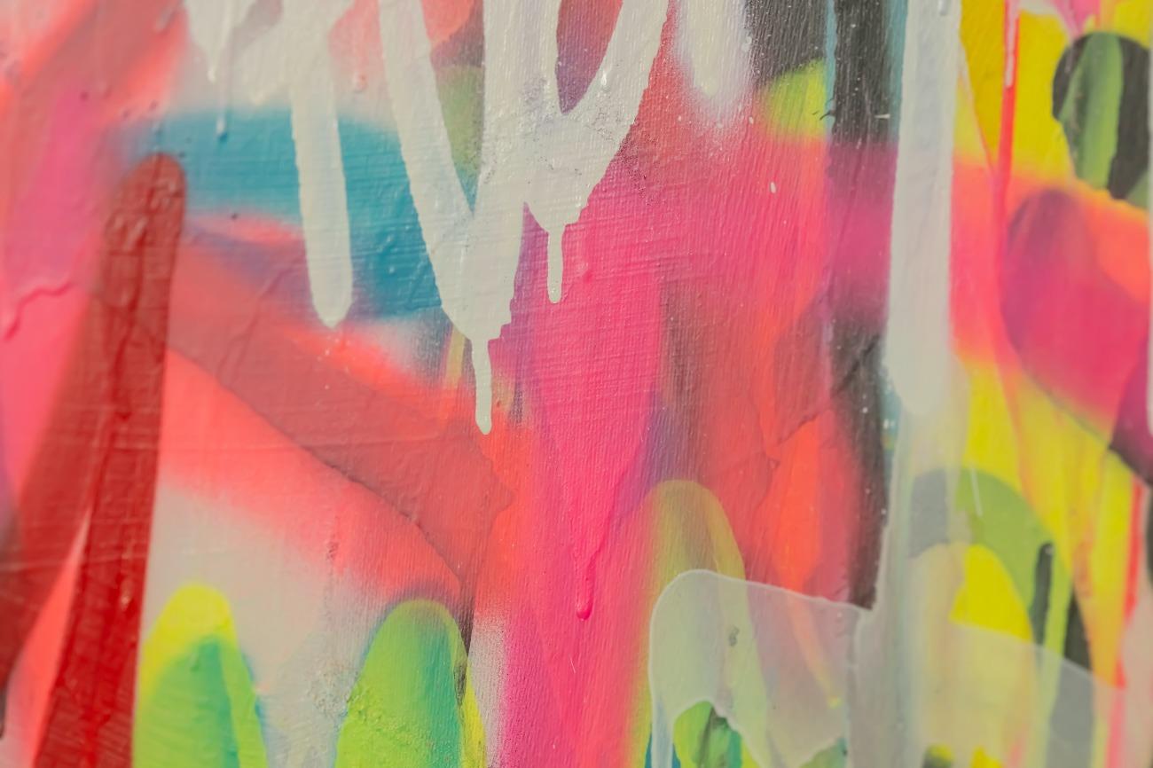 Original Gemälde abstrakt 160x220cm Mischtechnik expressionistisch handgemalt Mischtechnik bunt pink gelb hochwertig