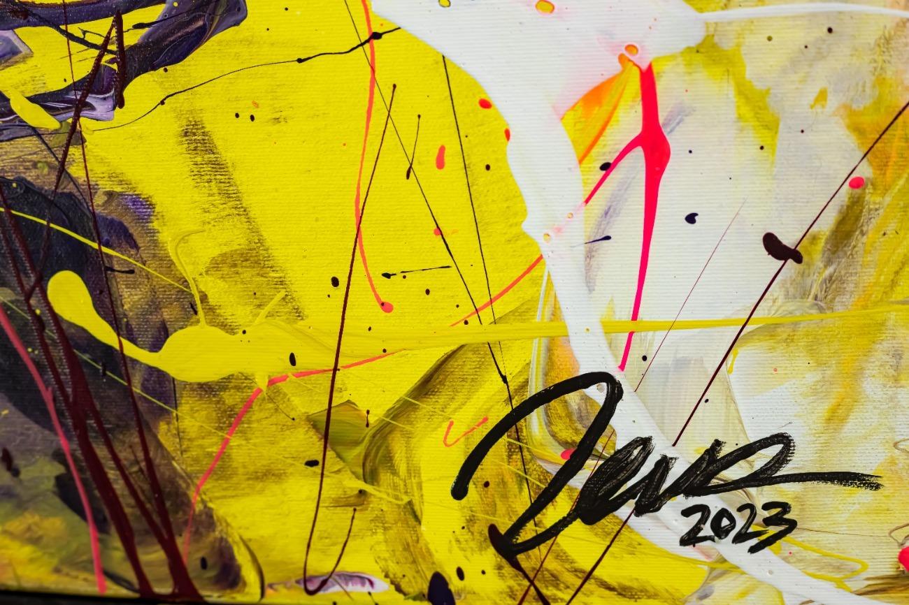 Dieses abstrakte Acrylbild ist ein handgemaltes Original vom Künstler Alex Zerr aus Bad Lisppringe und ist im Jahr 2023 in seinem Atelier entstanden. Das Bild hat eine Größe von 180x150cm und ist bereits auf einem hochwertigen und stabilem Rahmen aufgespannt. Dadurch kann das Bild nach der Lieferung direkt an die Wand gehängt werden und sofort in Ihrem Raum wirken. Alle Seiten des Gemäldes sind passend zum Motiv bemalt, so dass kein zusätzlicher Rahmen benötigt wird.