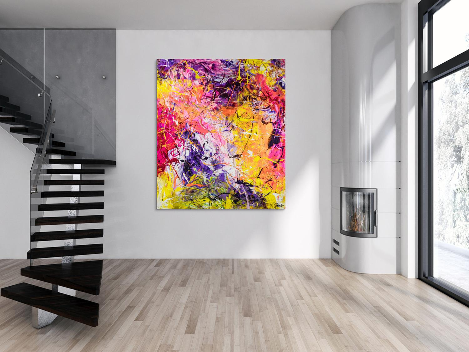 Die großformatigen, abstrakten Acrylgemälde sind ideal für Wohnzimmer, Schlafzimmer, Büros oder Geschäftsräume. Sie setzen farbenfrohe Akzente und schaffen eine lebendige, individuelle Atmosphäre die Sie und Ihre Gäste oder Kunden beeindrucken wird.