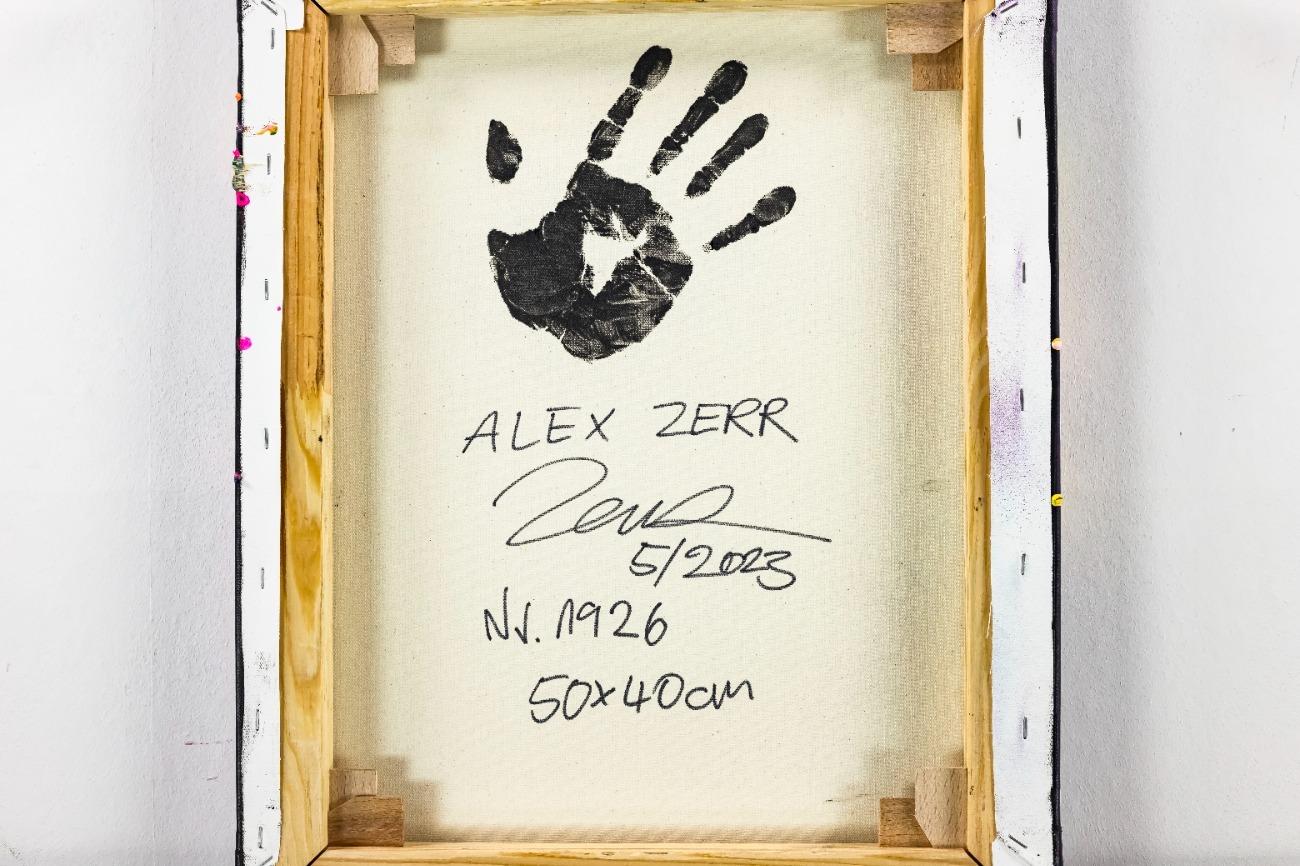 Eine einzigartige Vorderseite ist nicht alles: Bei fast allen Gemälden befindet sich auf der Rückseite der persönliche Handabdruck des Künstlers Alex Zerr.