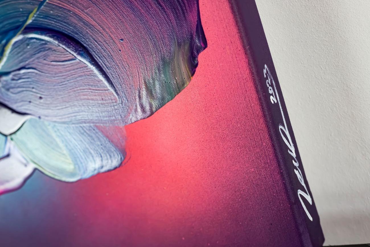 Dieses abstrakte Acrylbild ist ein handgemaltes Original vom Künstler Alex Zerr aus Bad Lisppringe und ist im Jahr 2023 in seinem Atelier entstanden. Das Bild hat eine Größe von 50x40cm und ist bereits auf einem hochwertigen und stabilem Rahmen aufgespannt. Dadurch kann das Bild nach der Lieferung direkt an die Wand gehängt werden und sofort in Ihrem Raum wirken. Alle Seiten des Gemäldes sind passend zum Motiv bemalt, so dass kein zusätzlicher Rahmen benötigt wird.