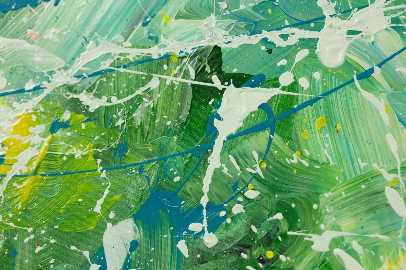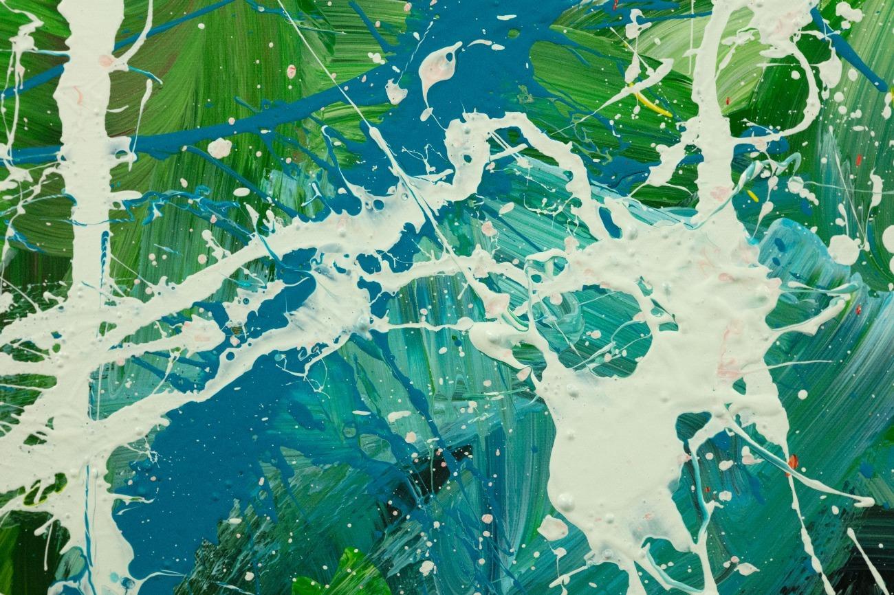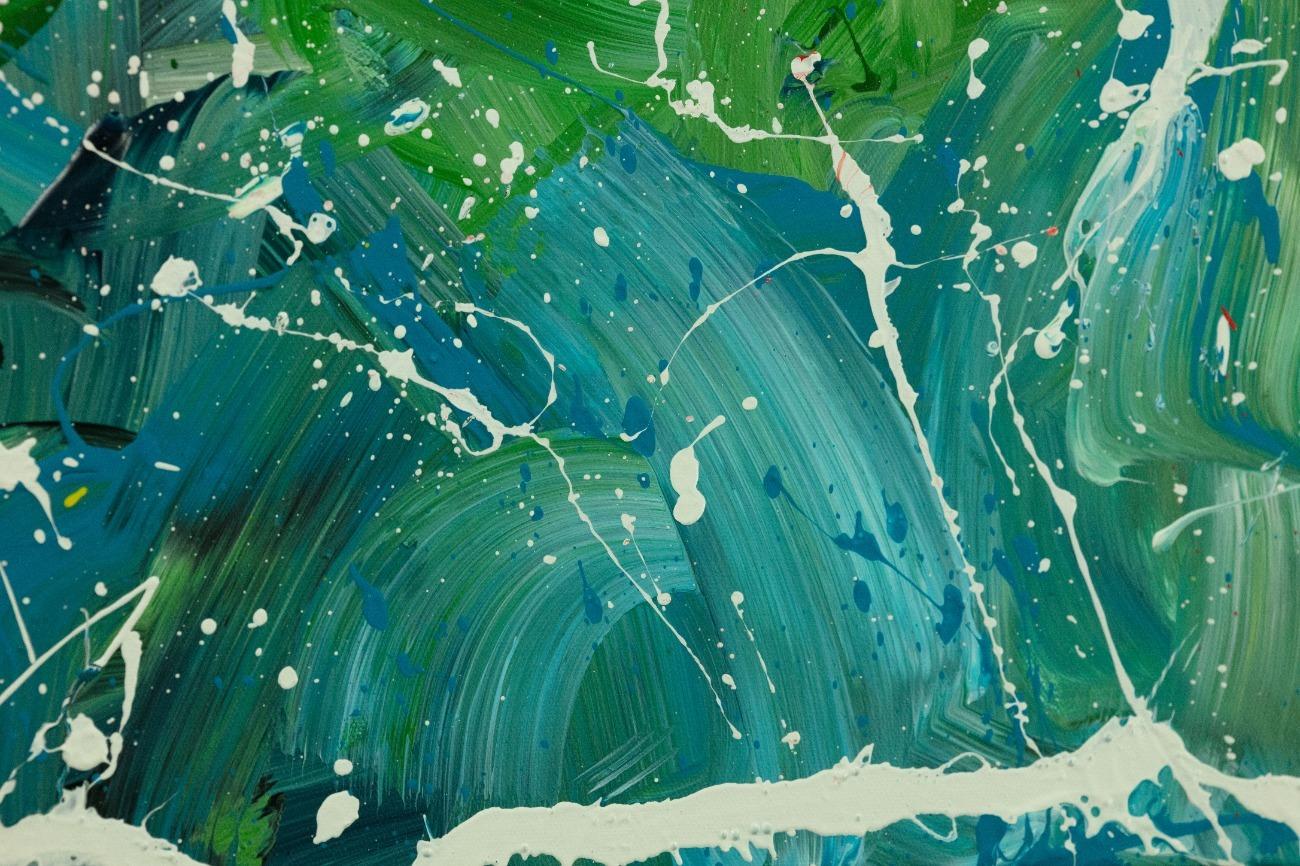 Original Gemälde abstrakt 60x130cm Action Painting expressionistisch auf Leinwand grün türkis weiß hochwertig