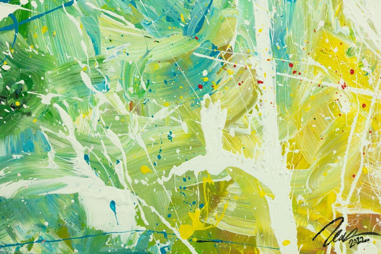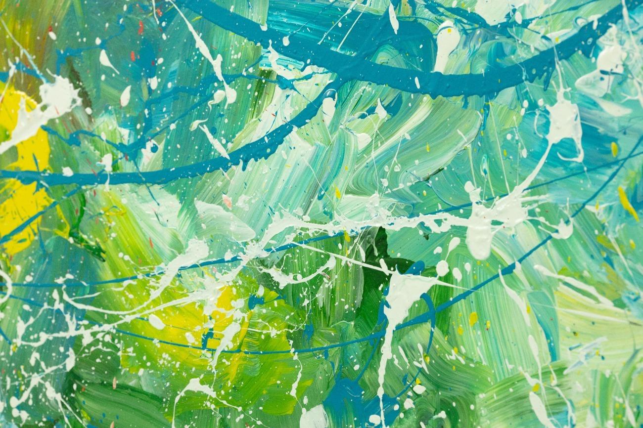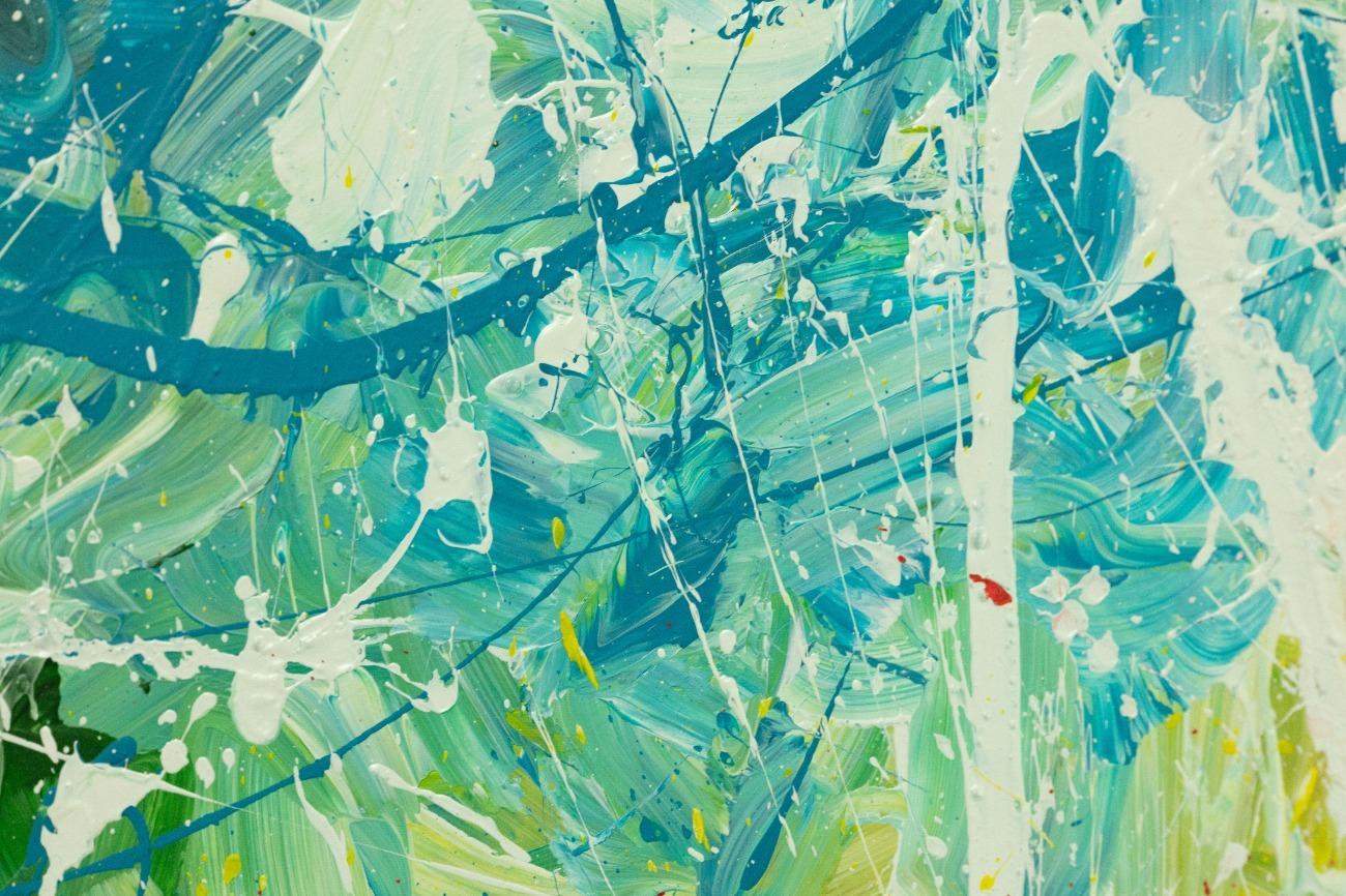 Original Gemälde abstrakt 60x130cm Action Painting expressionistisch auf Leinwand grün türkis weiß hochwertig