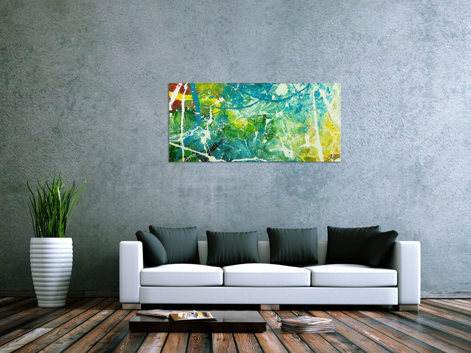Original Gemälde abstrakt 60x130cm Action Painting expressionistisch auf Leinwand  grün türkis weiß hochwertig